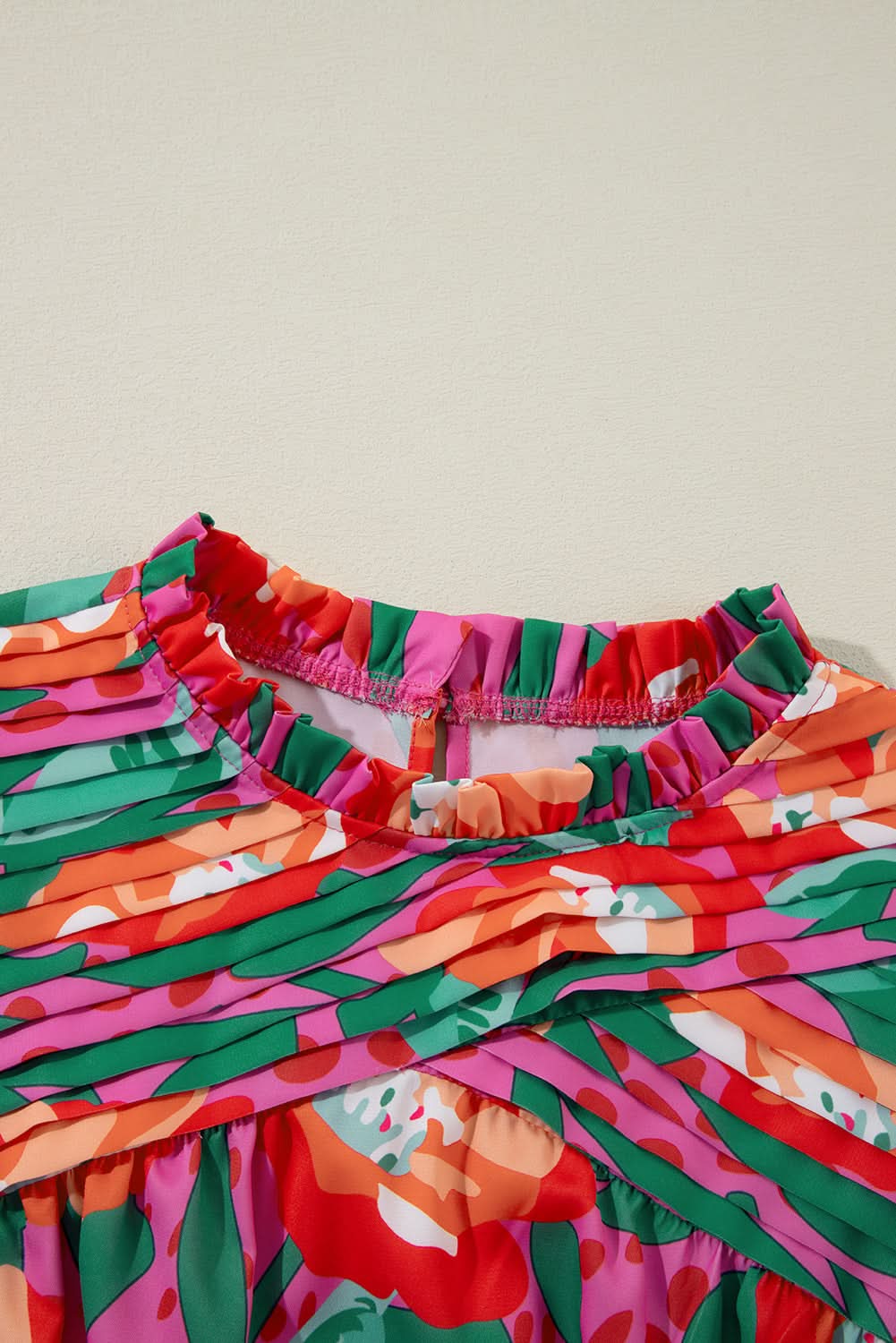 Elevate your wardrobe with our Plus Size Rose Floral Ruffle Blouse, a refined essential designed to celebrate curves with comfort. The blouse showcases a blooming rose print, a sophisticated pleated neckline, and delicate ruffles along the neckline that add texture. Trendy puff sleeves create a contemporary silhouette while maintaining a soft, draped fit through the torso.