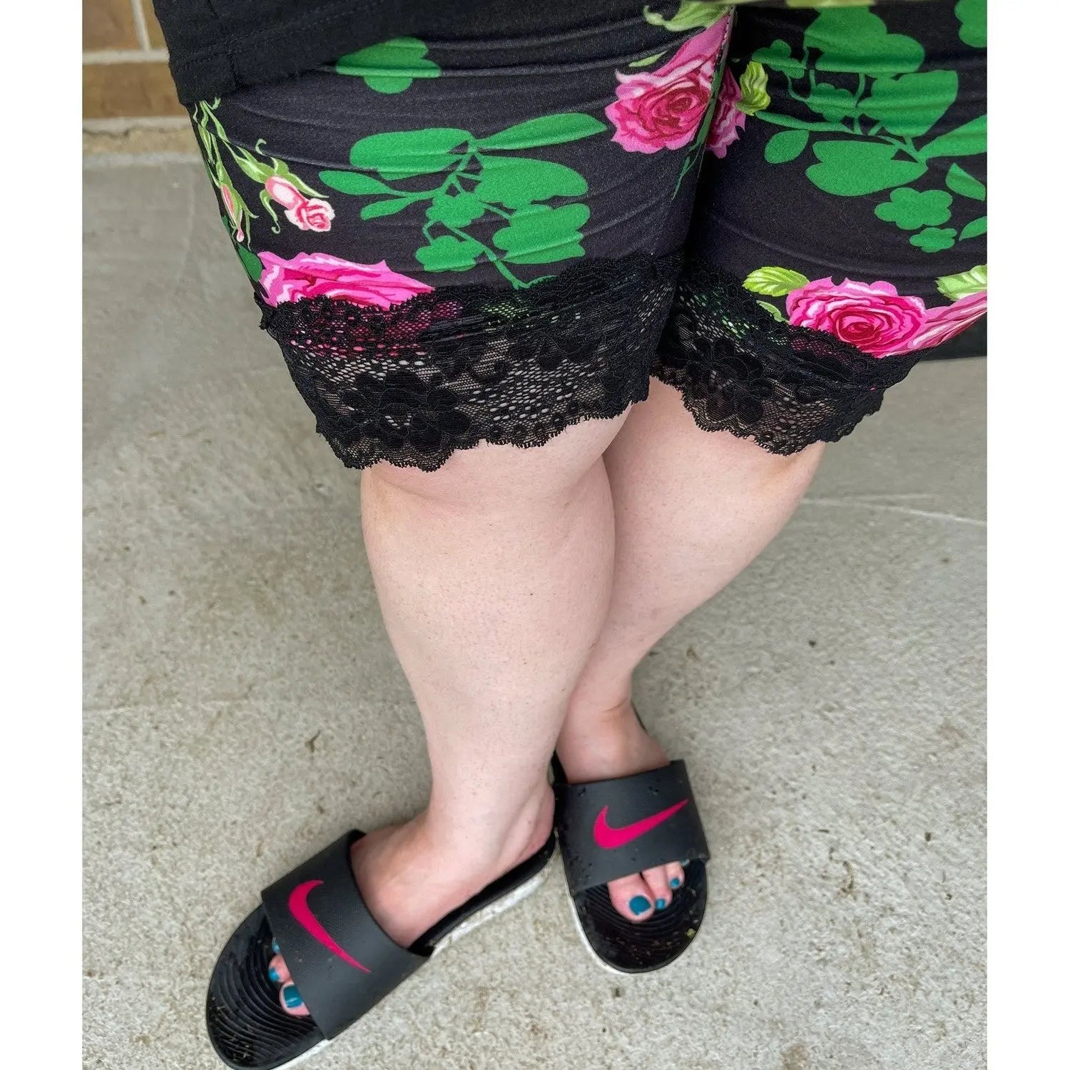 MM Shorts - Rose Garden Pattern with Black Lace - Casual Lounge - Main Product Image