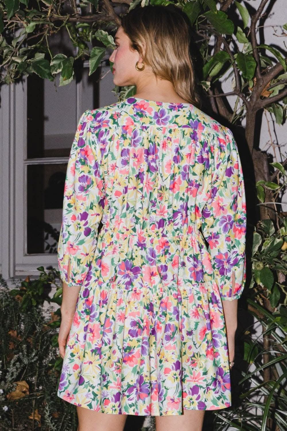 And The Why Square Neck Puff Sleeve Floral Dress Delight - Love Salve