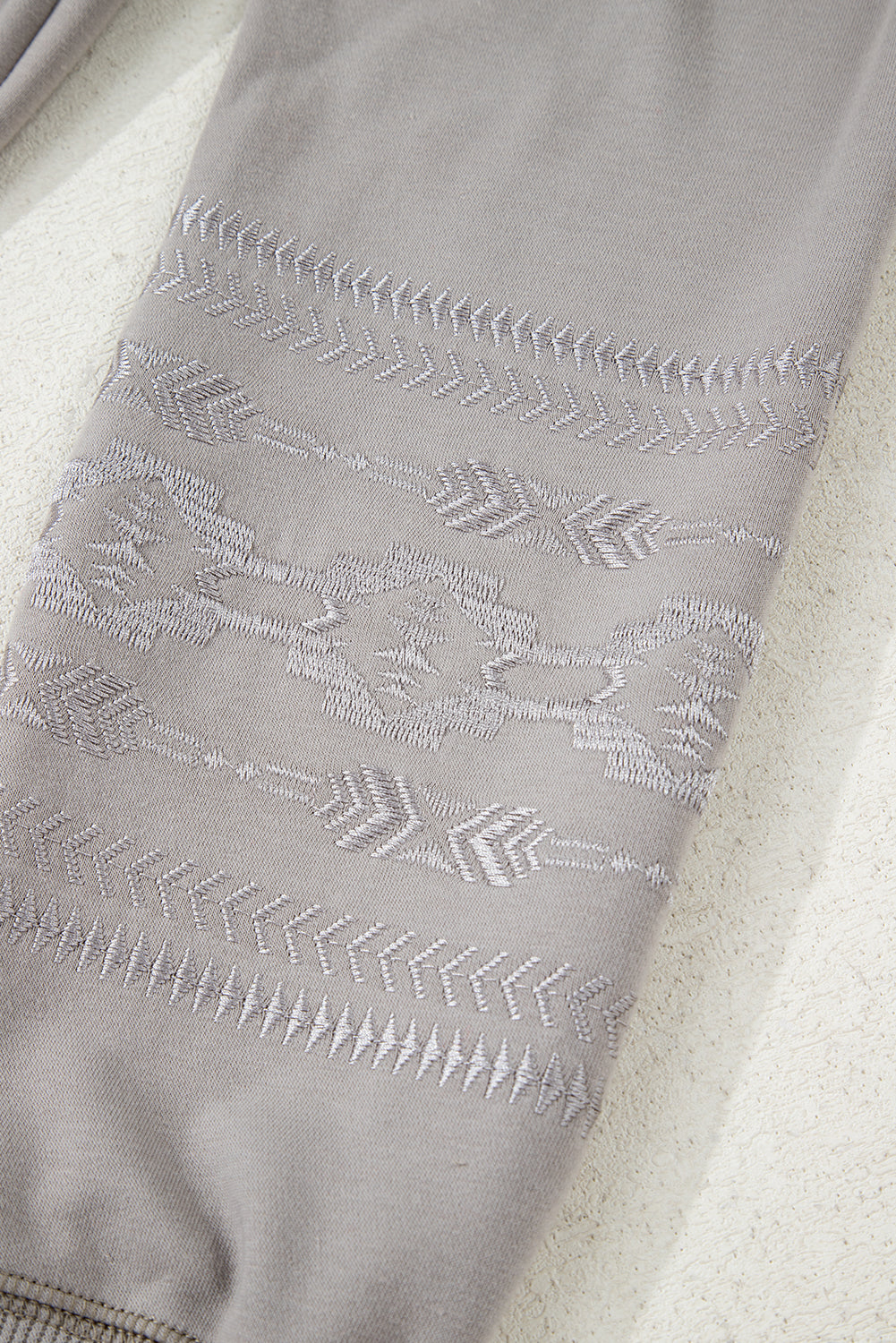 Blending rugged western charm with everyday comfort, this parchment-toned sweatshirt features intricate Aztec embroidery and a flattering V-neckline. The relaxed silhouette supports easy layering for weekends and daily wear, while the soft polyester-cotton blend provides durable warmth.