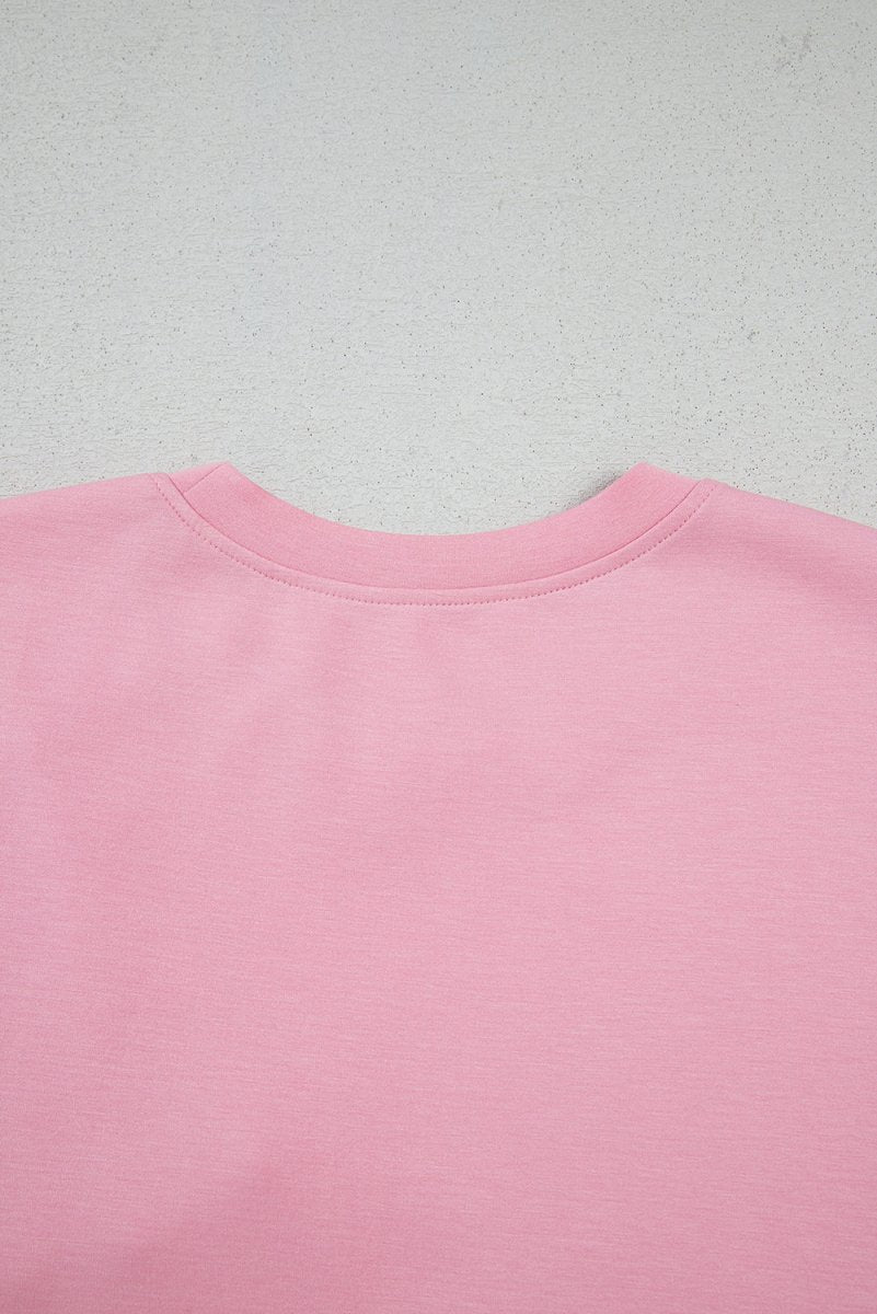 Pink Bow Applique Half Sleeve T-shirt for Stylish Looks - Love Salve