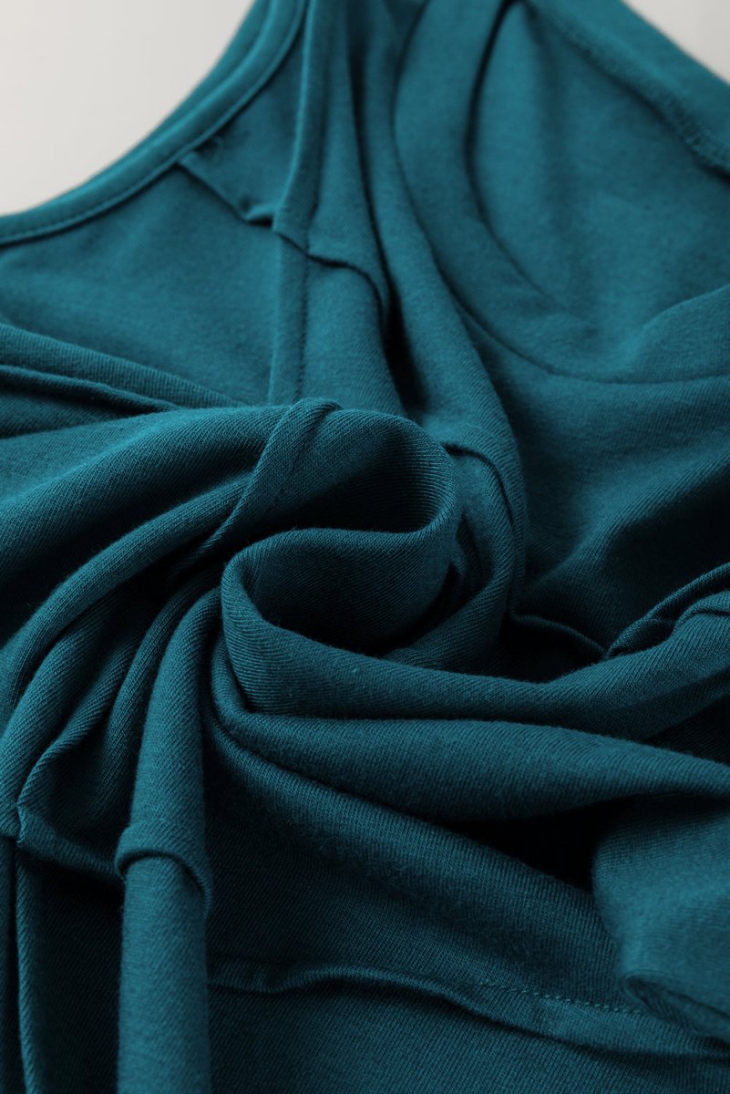 Blue Sapphire Solid Color Stitching Detail Round Neck Tank Top