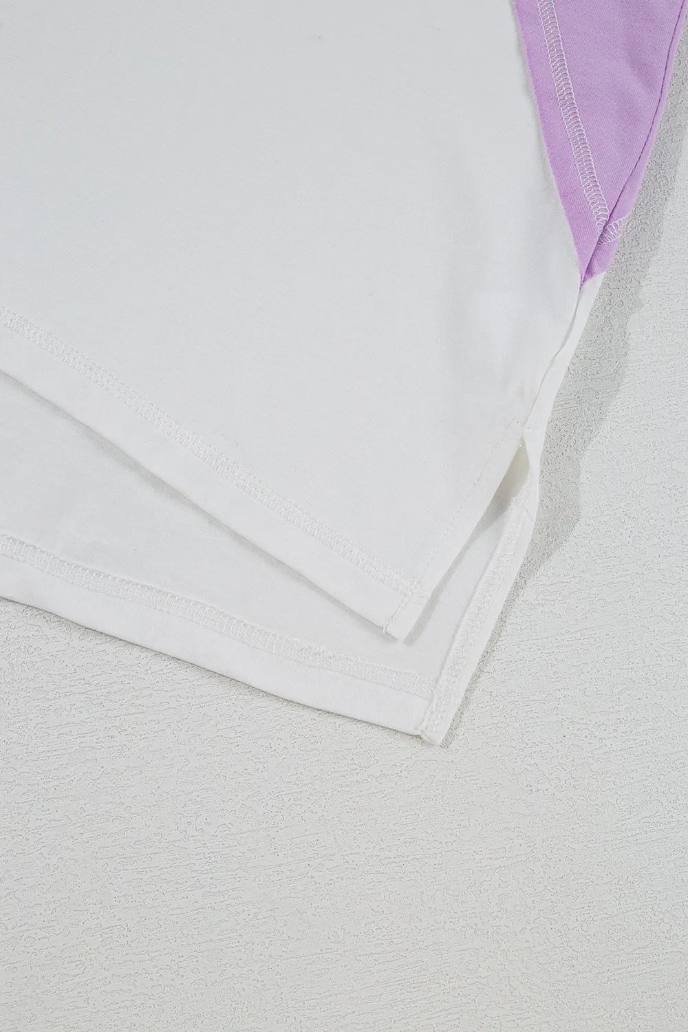 Color Block Patchwork V Neck Exposed Seam High Low T Shirt