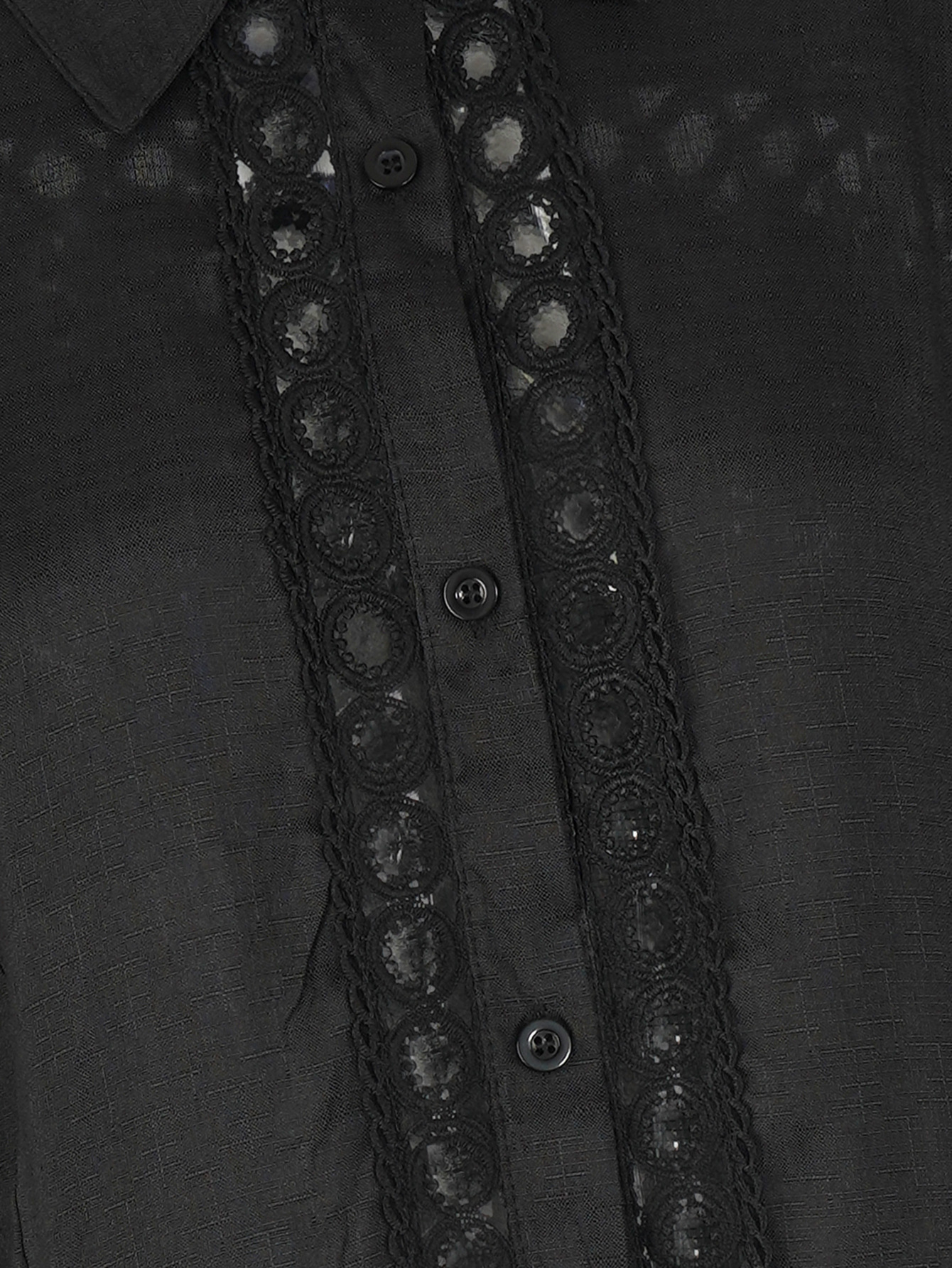 Cotton Bamboo Lace Shirt Beach Jacket Beach Cover Up Vacation Swimsuit Outer Wear Cardigan Sun Protective Clothing