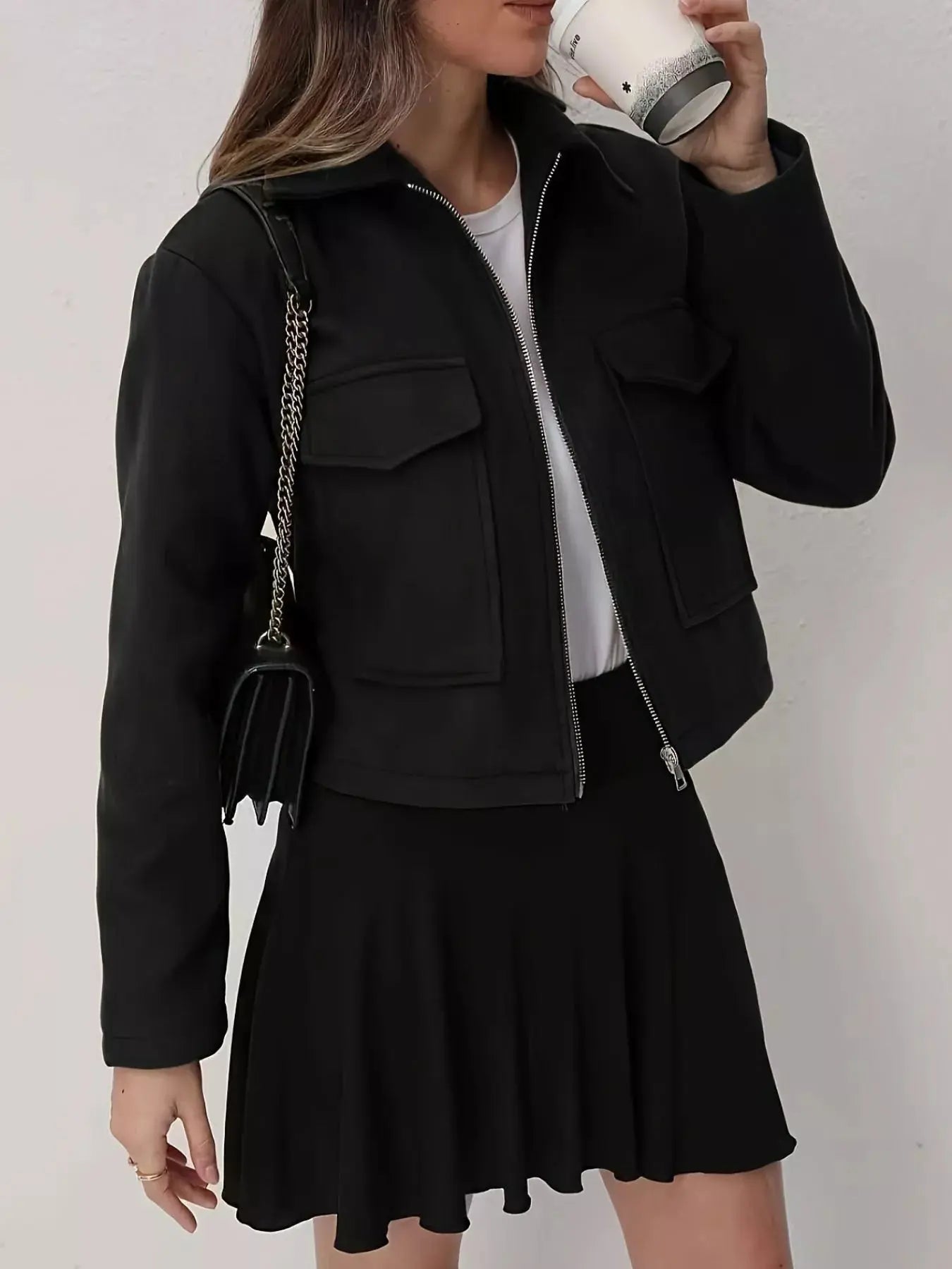 Cropped Zip-Up Pocketed Jacket Simply Love