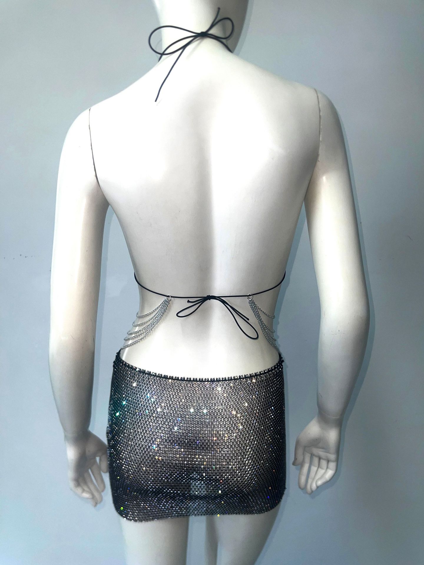 Dress Winter Chain Lace up Halterneck Dress Nightclub Mini Dress Women