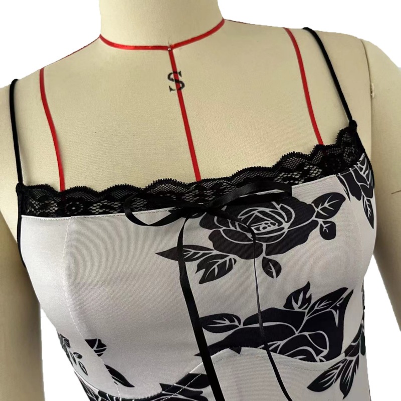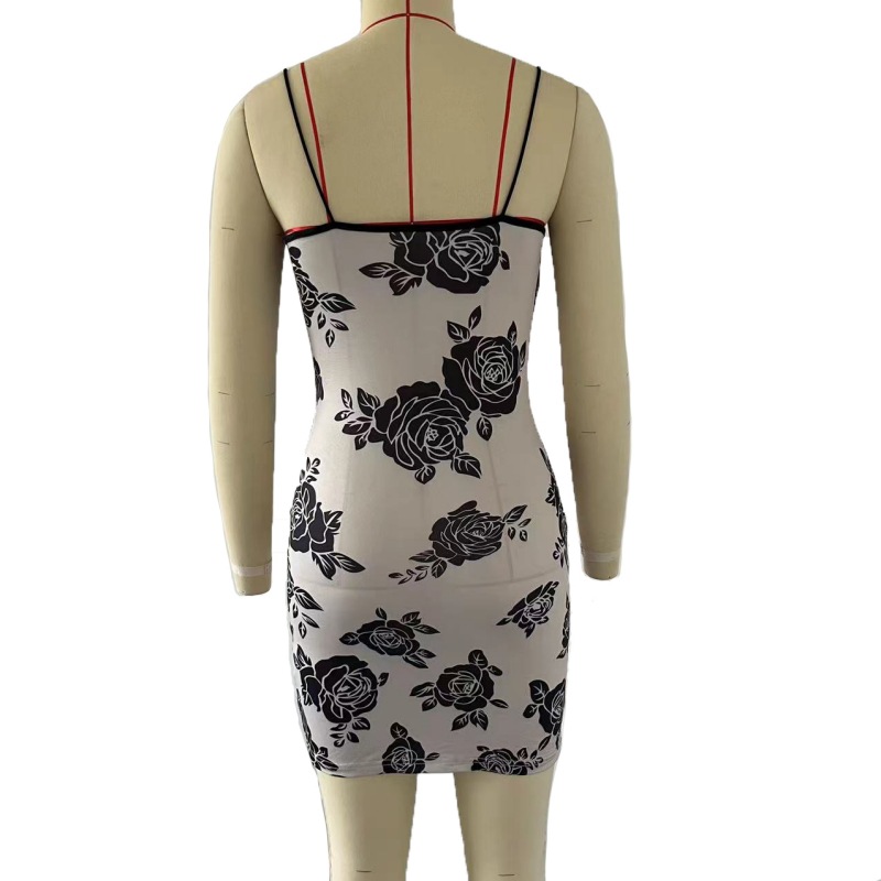 Fall Women Clothing Sexy Backless Spaghetti Straps Slim Fit Printed Sheath Dress