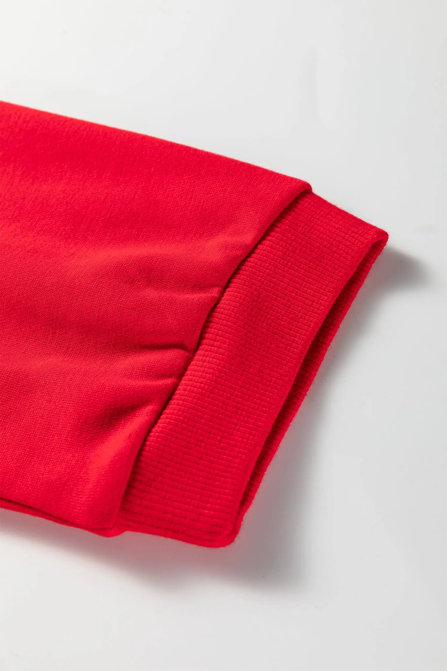 Experience bold texture and cozy comfort with this Fiery Red baggy sweatshirt. A floral bow patchwork detail adds feminine charm, while exposed seam lines lend an edgy twist. Designed for a relaxed, versatile fit that suits different body shapes, it pairs effortlessly with jeans or joggers for everyday wear.
