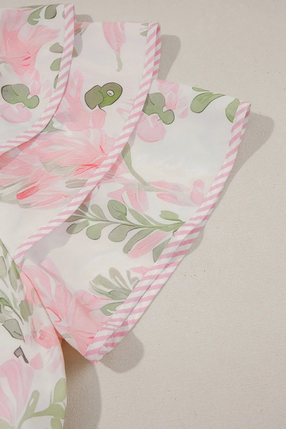 Floral Contrast Edge Layered Short Sleeve Mini Dress