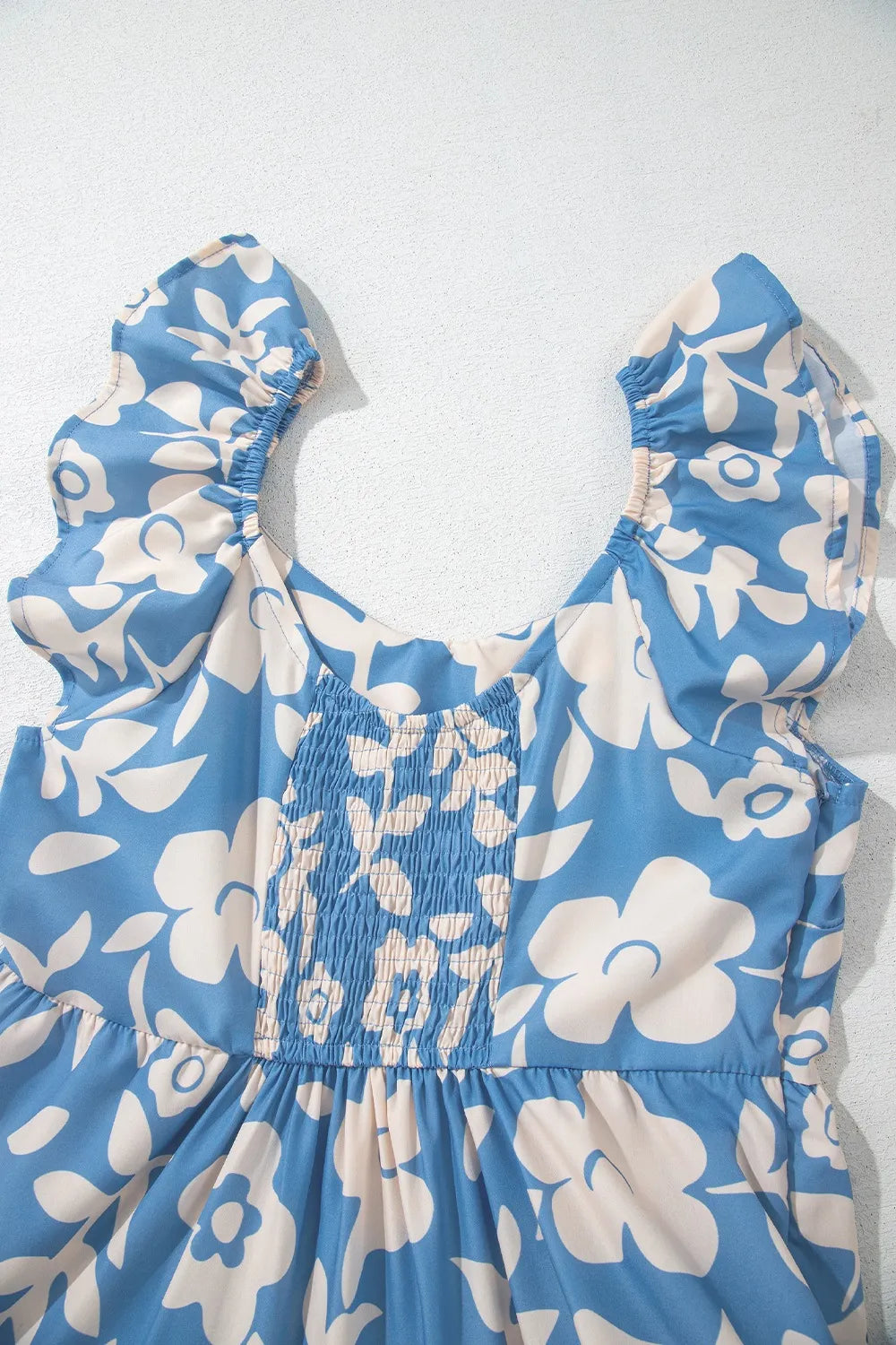 Floral Flutter Shoulder Tiered Flowy Midi Dress