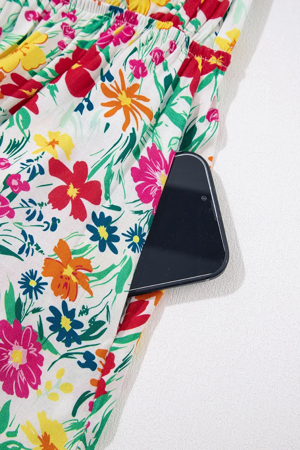 Floral Knotted Straps Cinched Waist Ruffle Hem Mini Dress