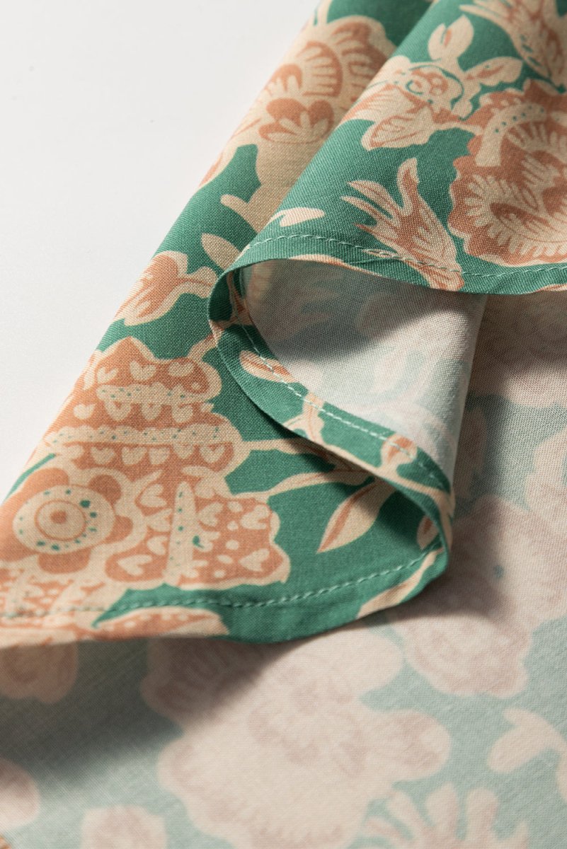 Don’t miss out on adding this versatile Green Floral Print Pleated Buttoned V Neck Short Sleeve Blouse to your collection. Get yours today and embrace the vibrant style!