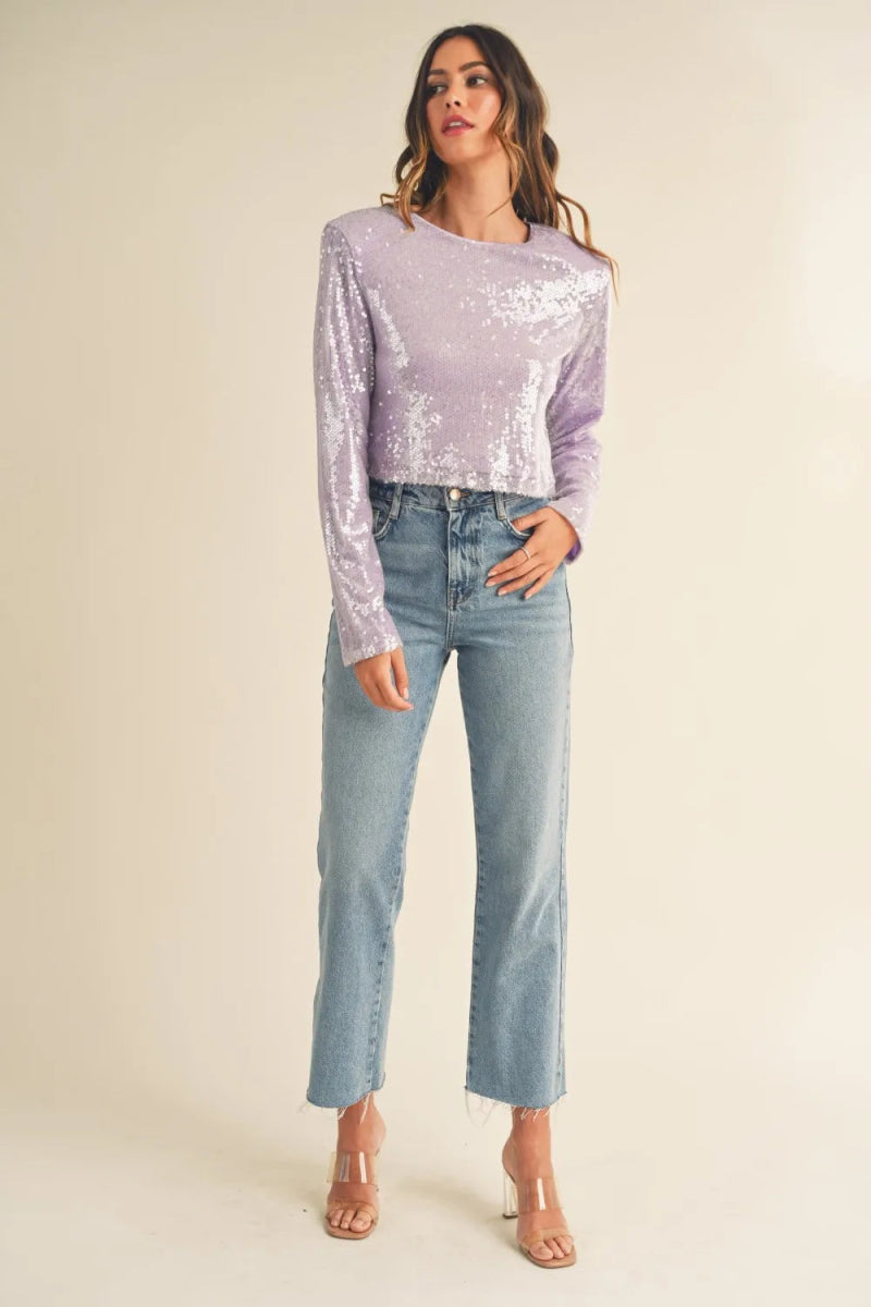 MABLE Shoulder Padded Sequin Crop Top for Glamorous Style - Love Salve