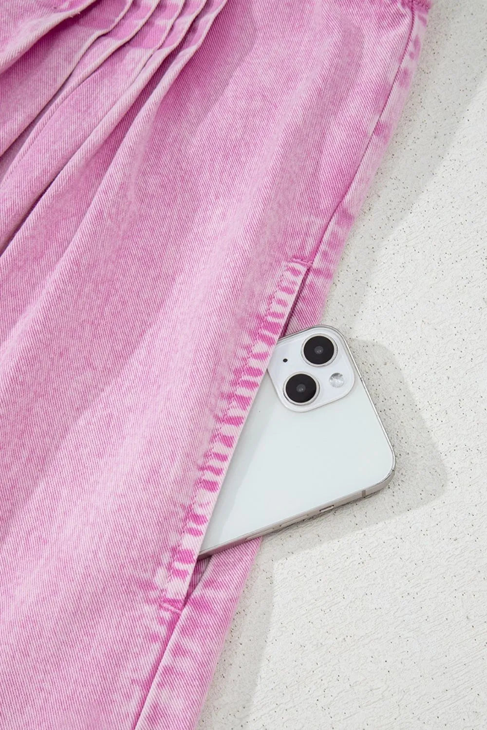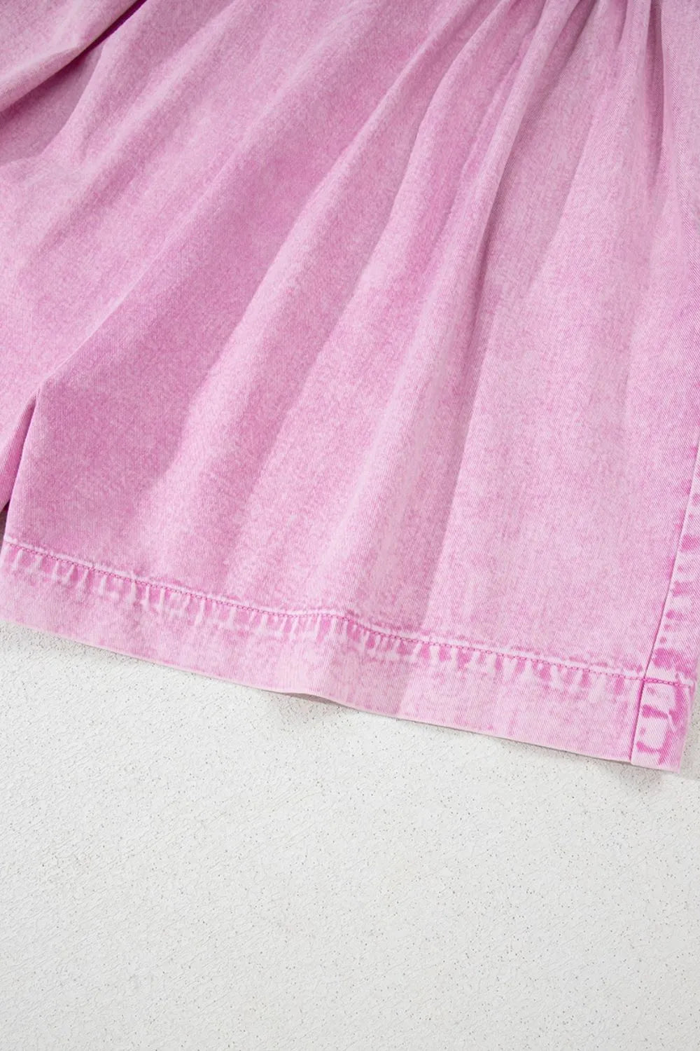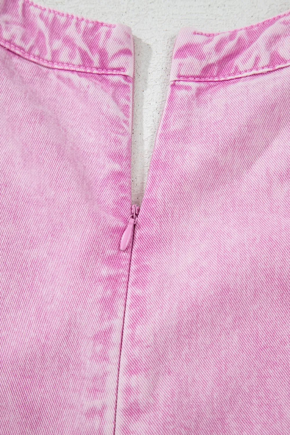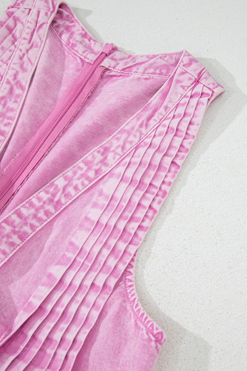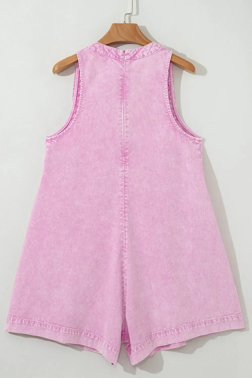 Mineral Wash Pleated Bust V Neck Sleeveless Denim Romper