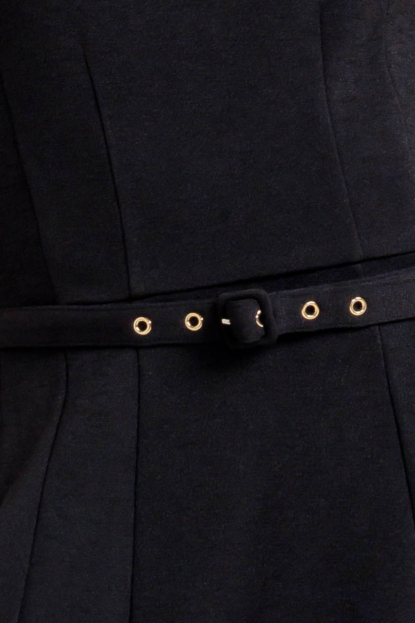 The dress includes a self fabric belt with a simple buckle to define the waist, and a circle skirt that drapes into a graceful midi length. A V-back bodice adds a touch of sophistication, while a discreet zipper closure at the back ensures a secure, comfortable fit.