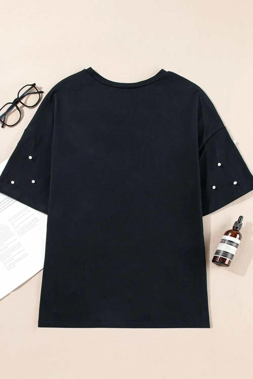 Pearl Beaded Round Neck Half Sleeve T Shirt