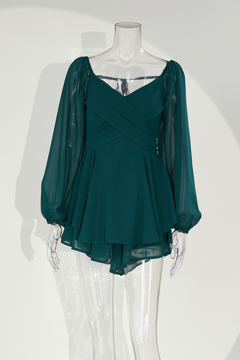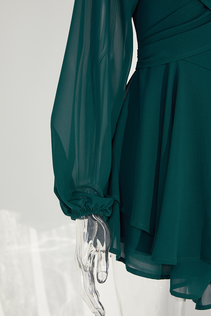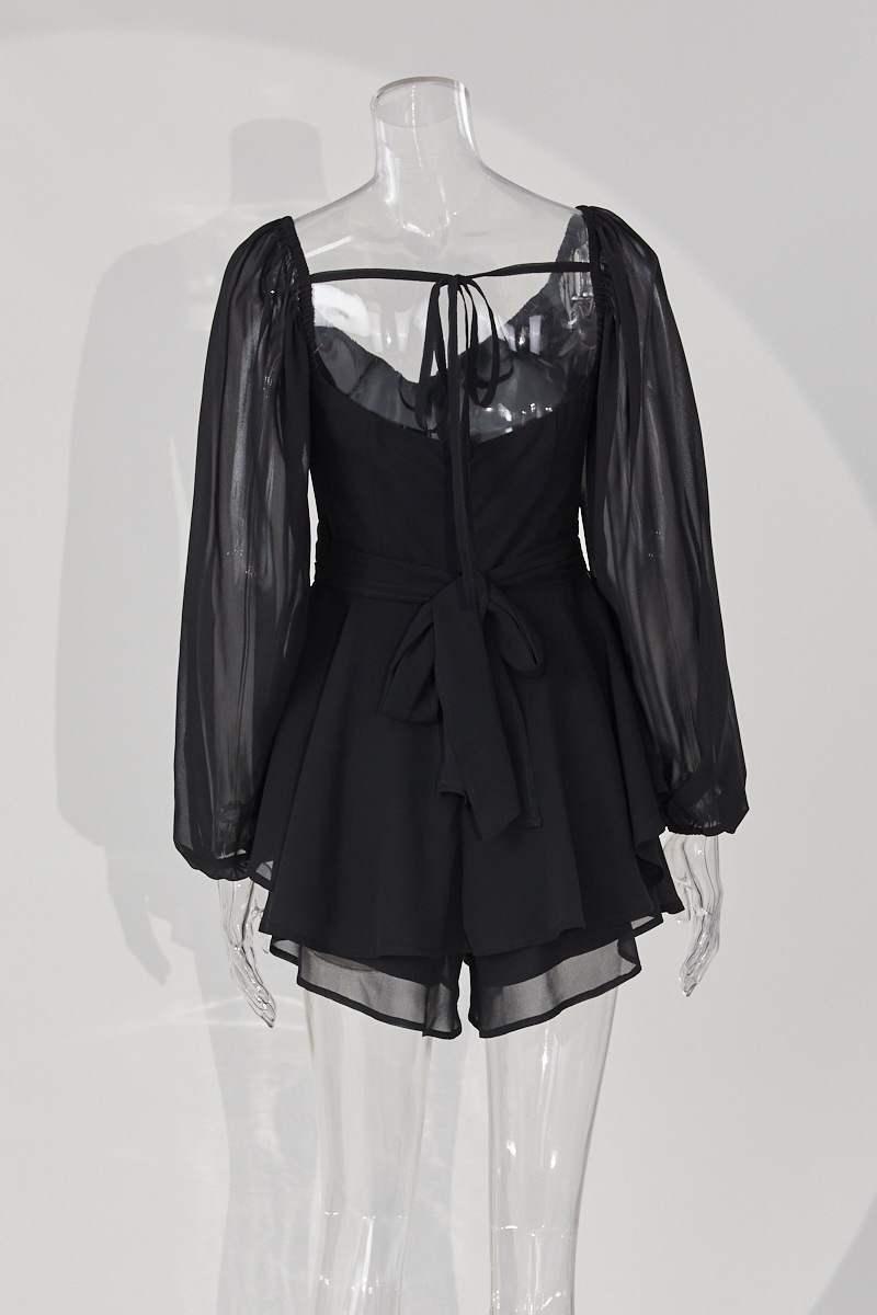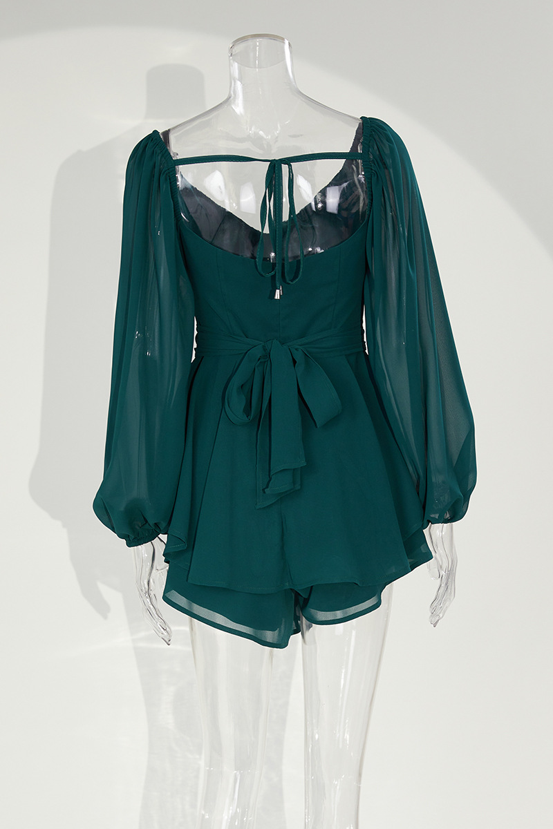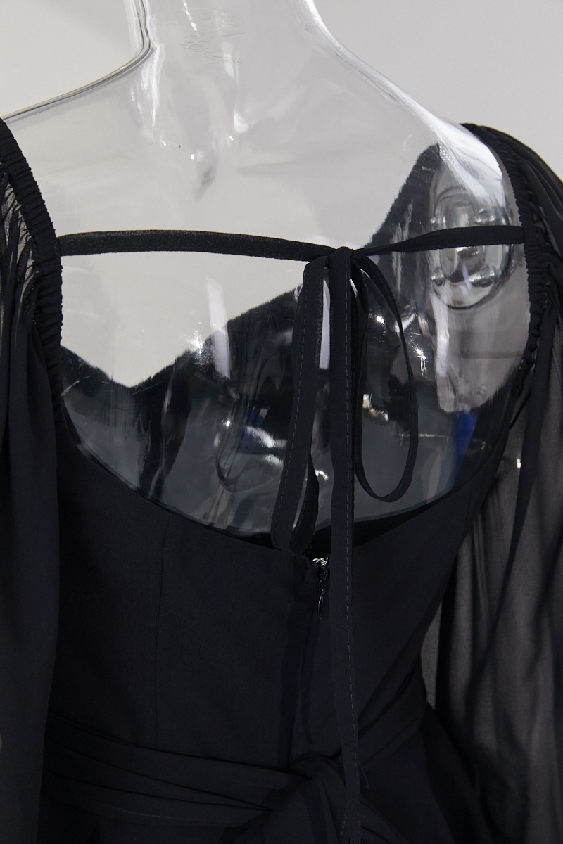 Popular Dress Culottes Autumn Sheinv Collar Lantern Long Sleeve Lace Up Casual Chiffon Dress