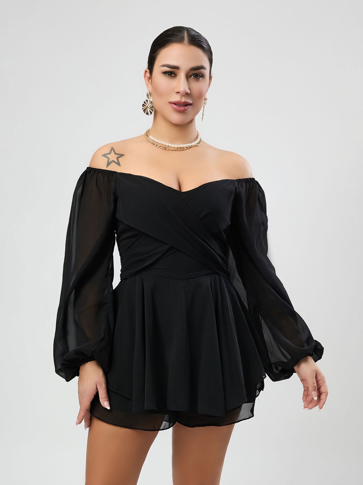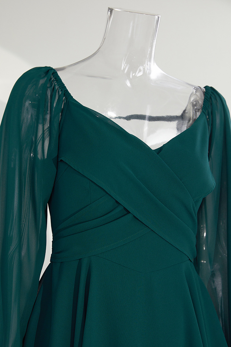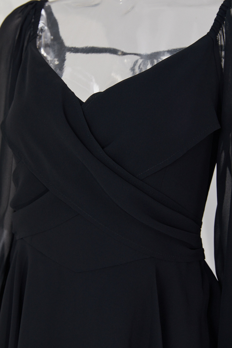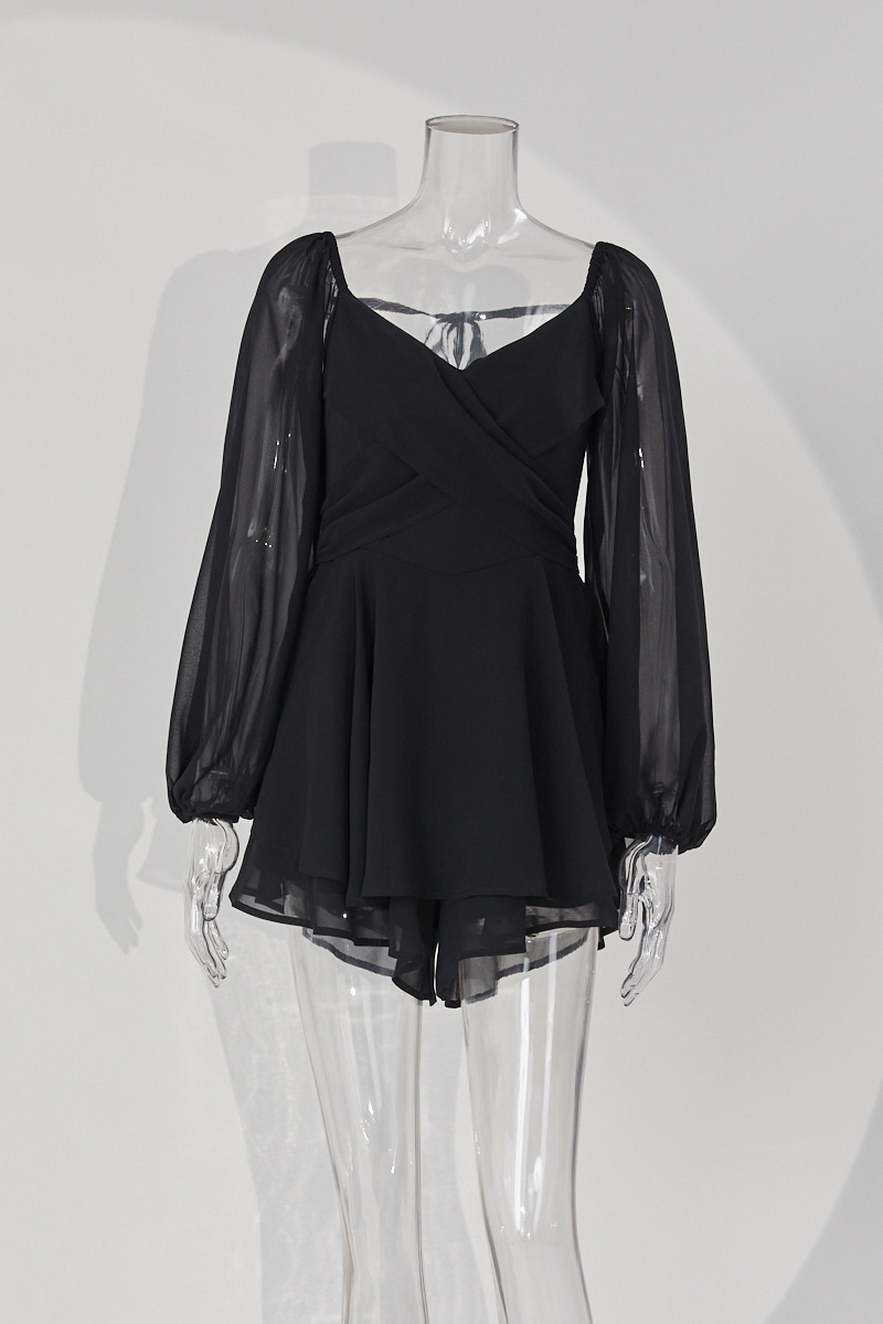 Popular Dress Culottes Autumn Sheinv Collar Lantern Long Sleeve Lace Up Casual Chiffon Dress