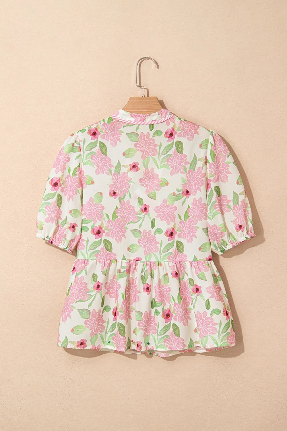 Printed Tie Neck Short Sleeve Blouse