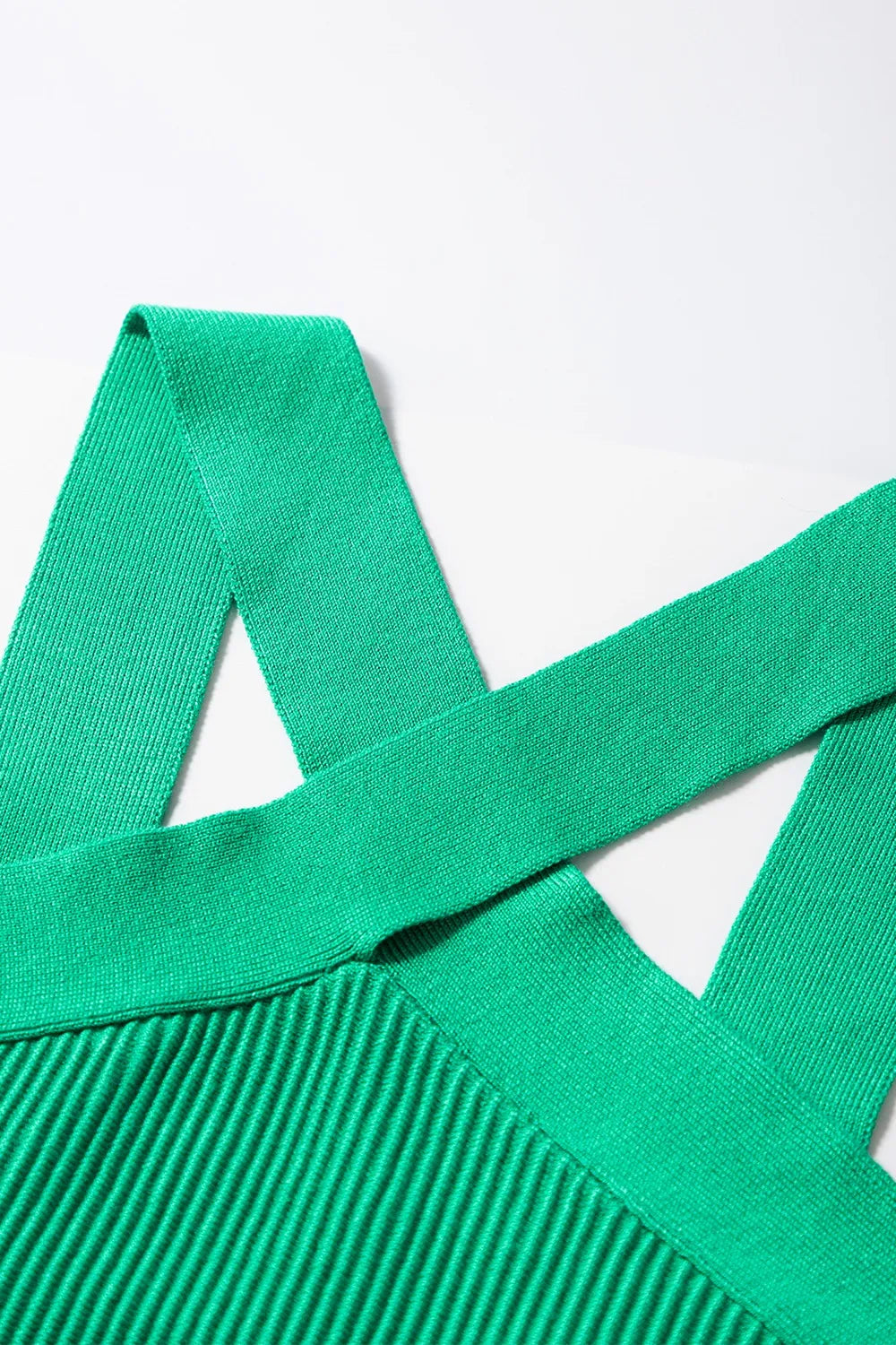 Ribbed Criss Cross Halter Neck Sheath Sweater Tank Top