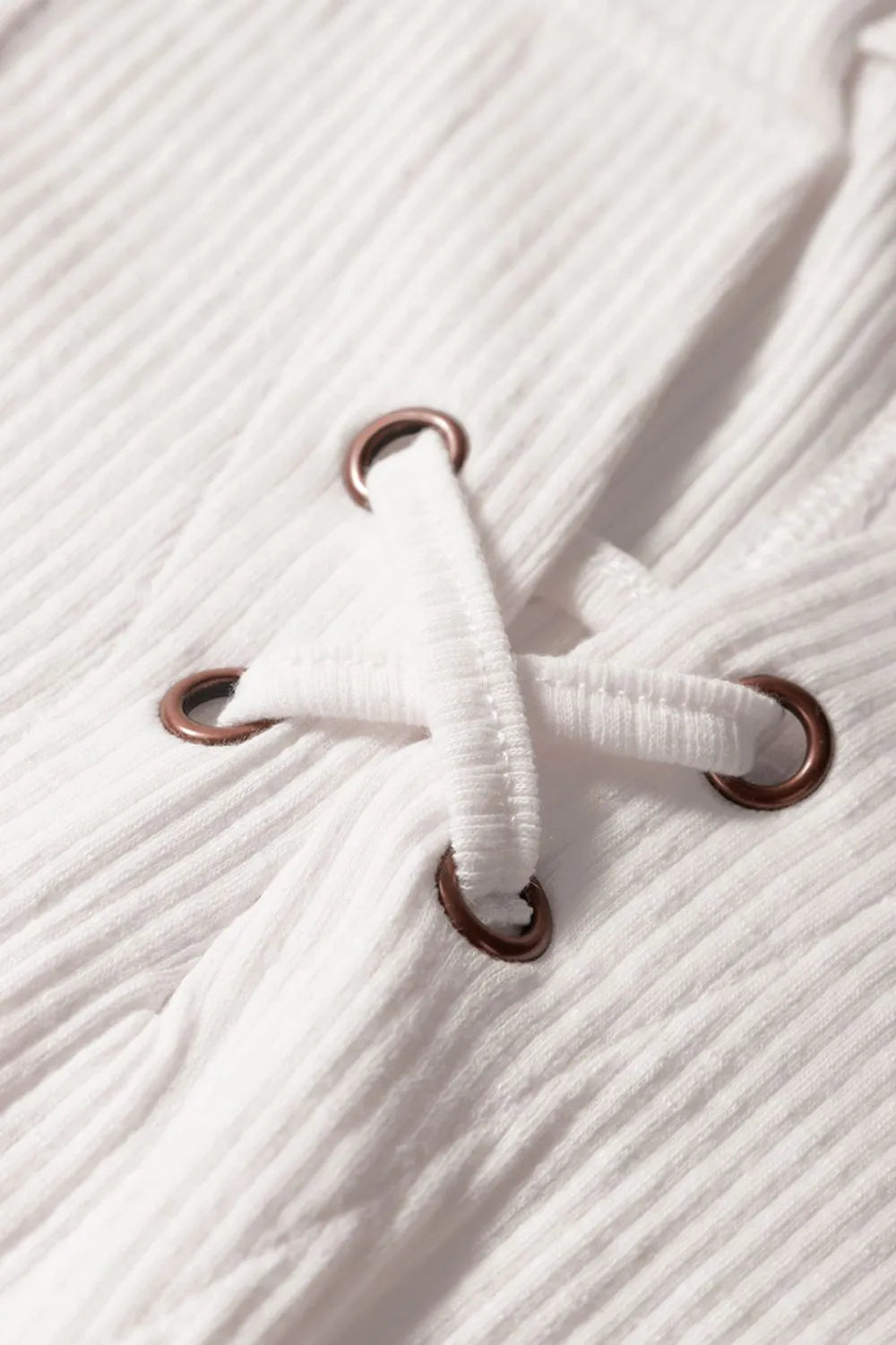Ribbed Texture Lace Patchwork Short Sleeve Top