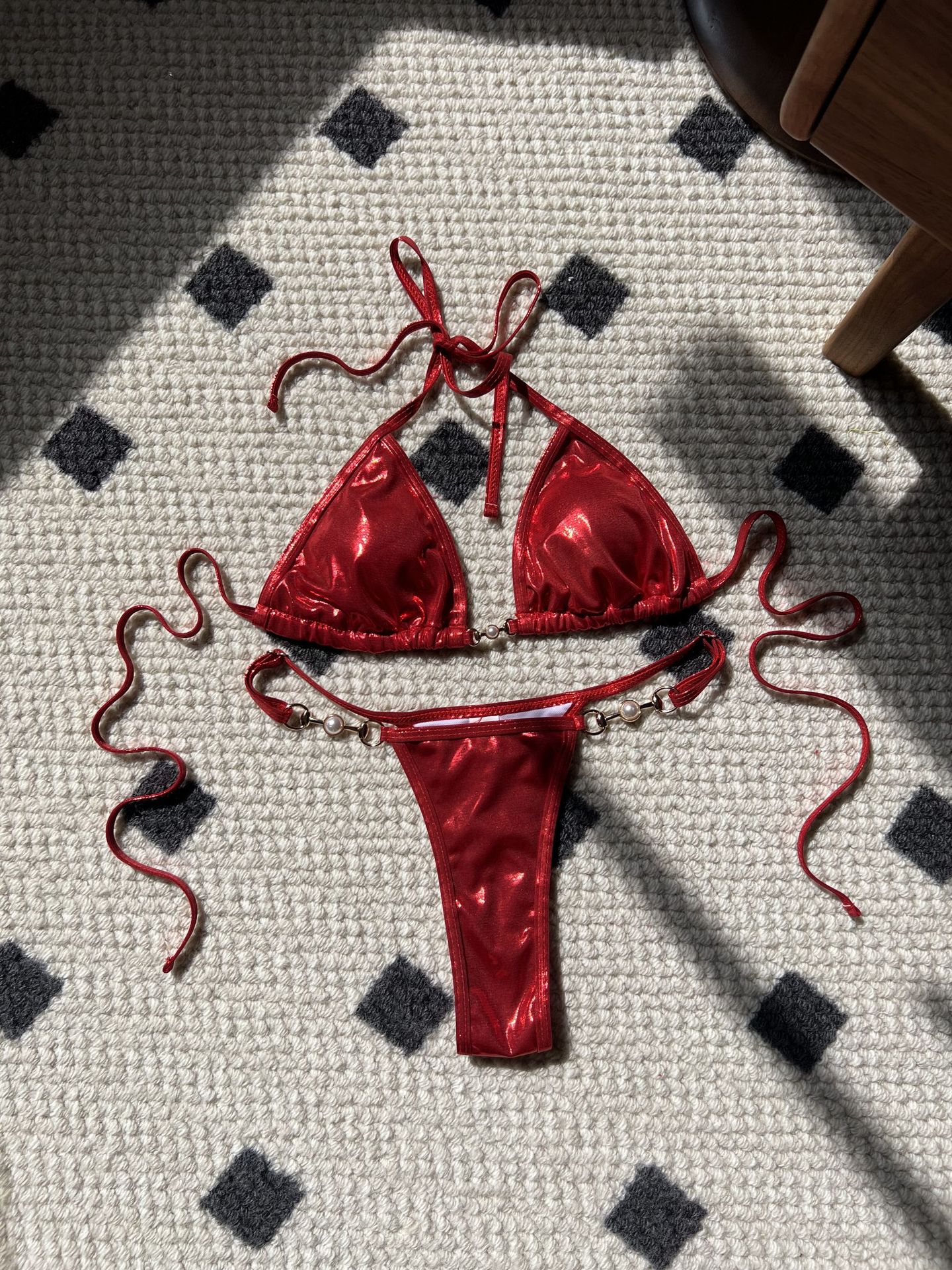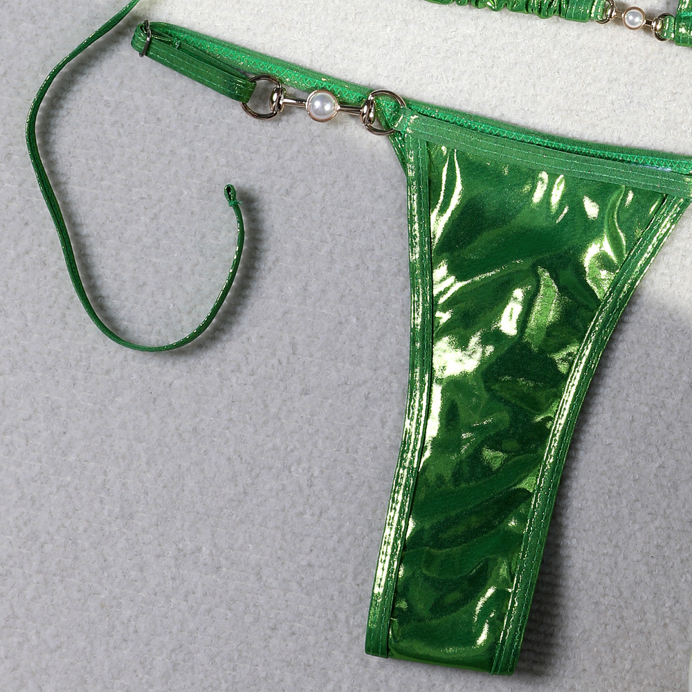 Sexy Glossy Pearl T Shaped Bikini Swimwear Swimsuit Bikini