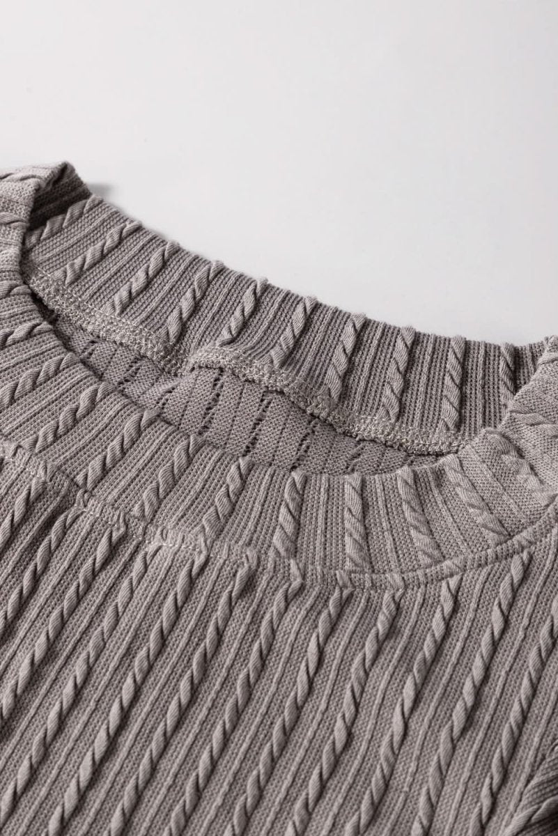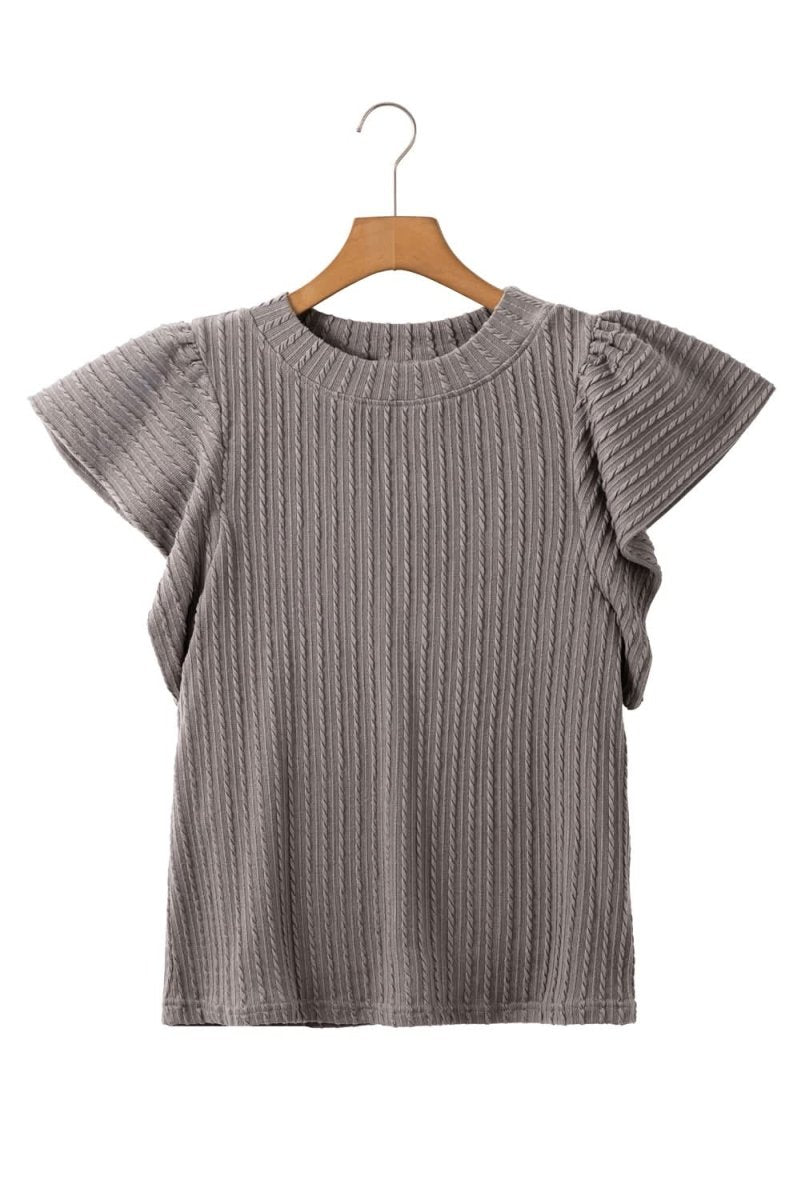 Elevate your everyday style with our Sleet Solid Color Textured Flutter Sleeve Top. Crafted from a luxurious cable textured fabric, this top delivers both elegance and comfort.
