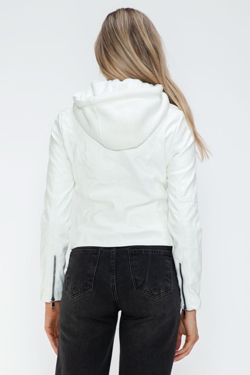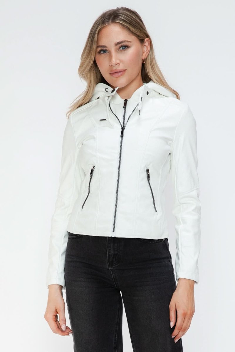Elevate your wardrobe with the Snobbish Faux Leather Zip Up Drawstring Hooded Jacket. Crafted from 100% pleather, this chic piece features:
