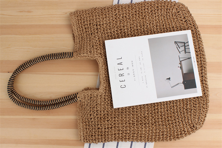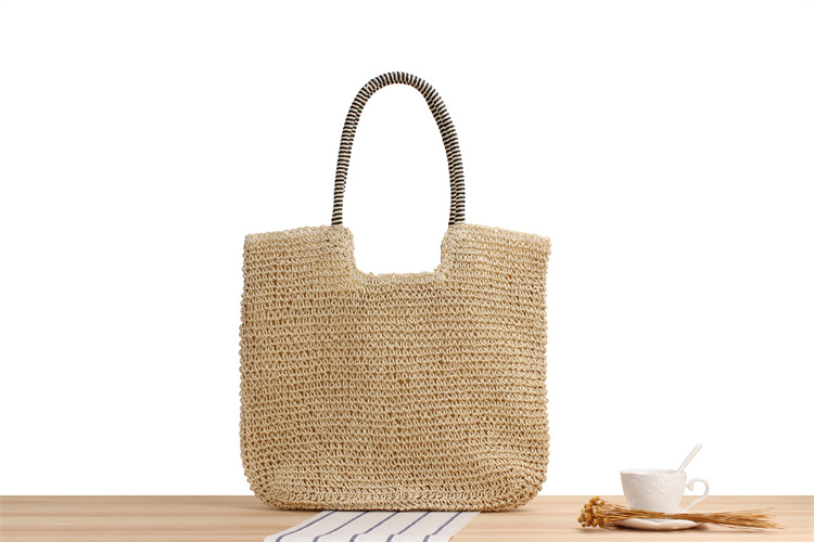 Solid Color Handmade Woven Bag Mori Simple One-Shoulder Straw Bag Summer Beach Bag