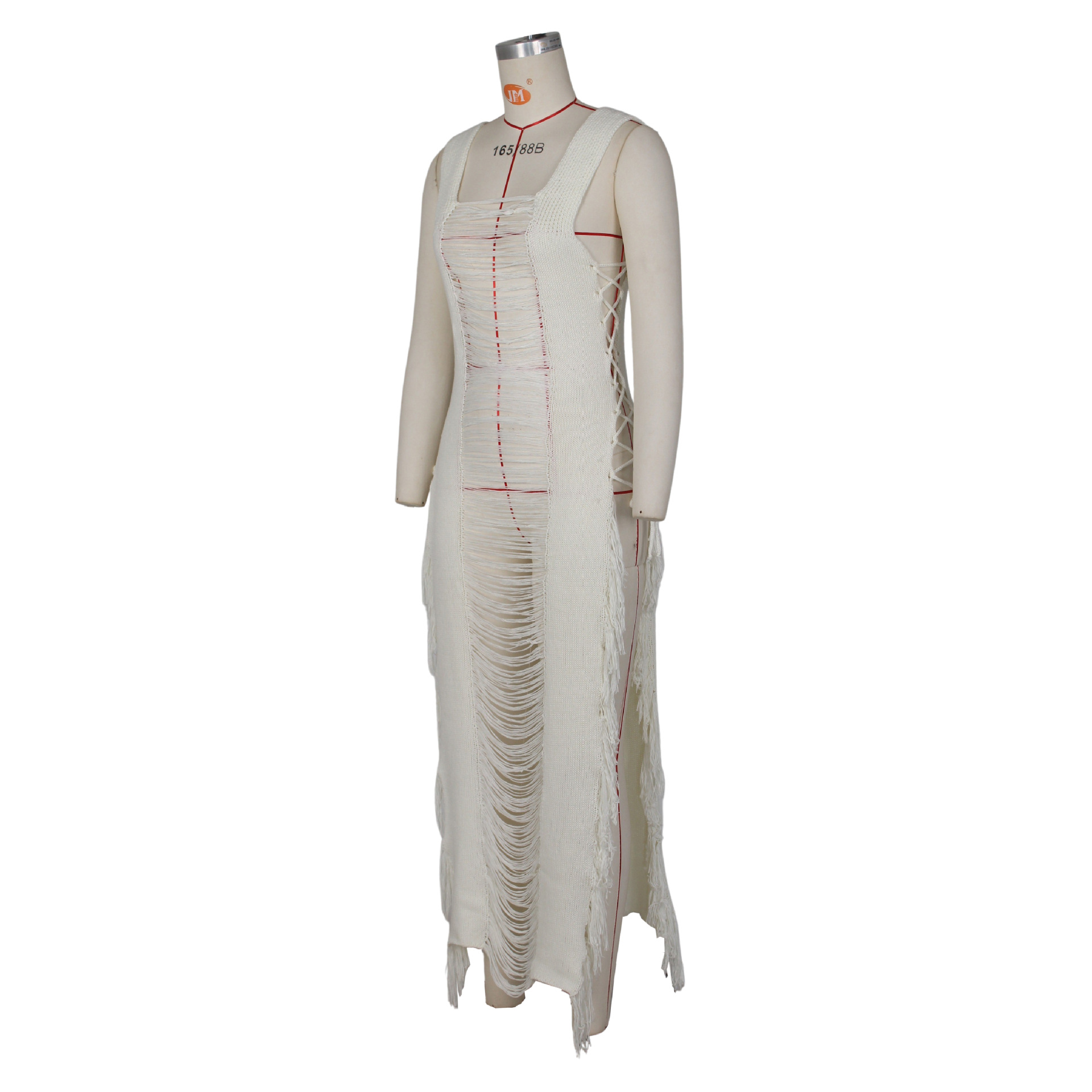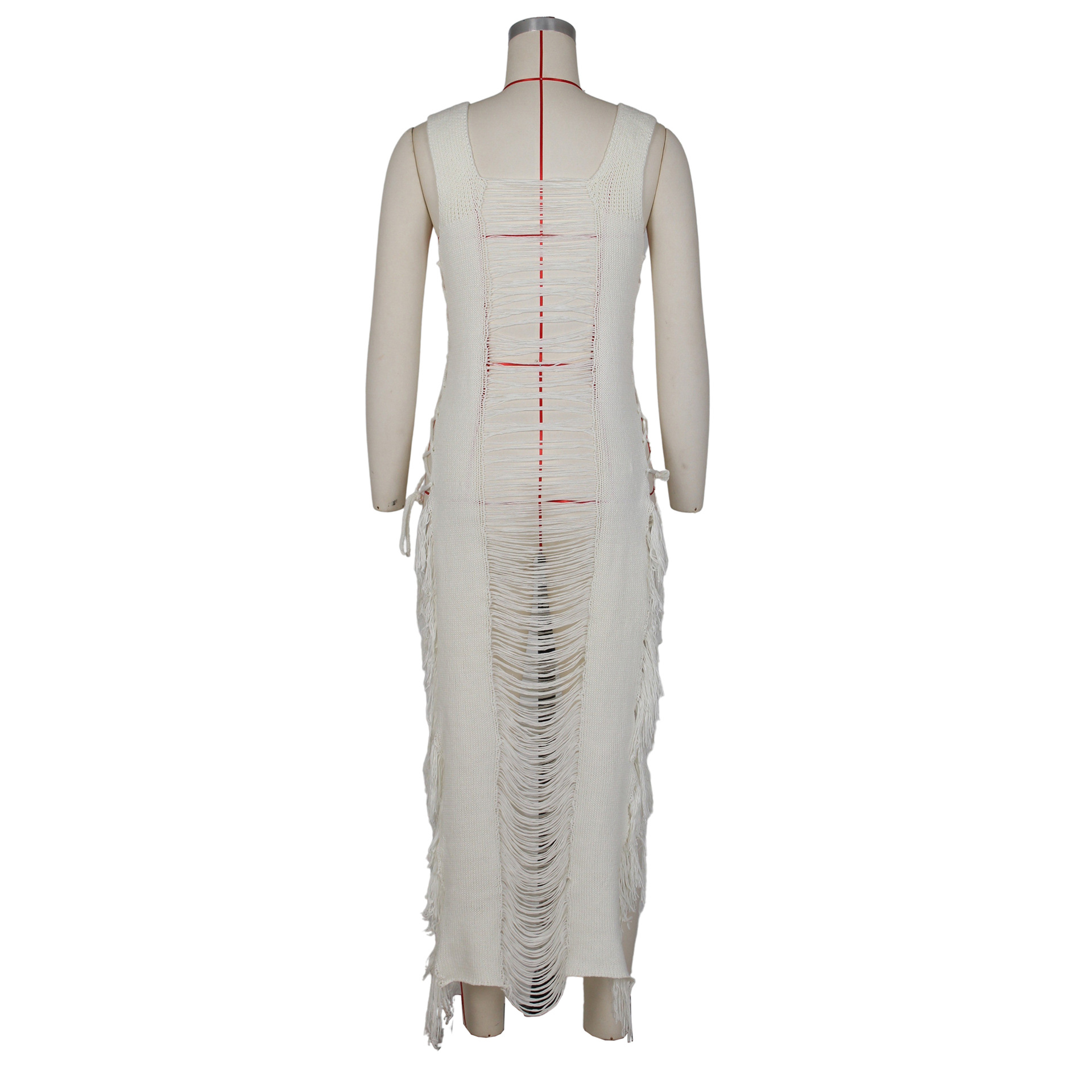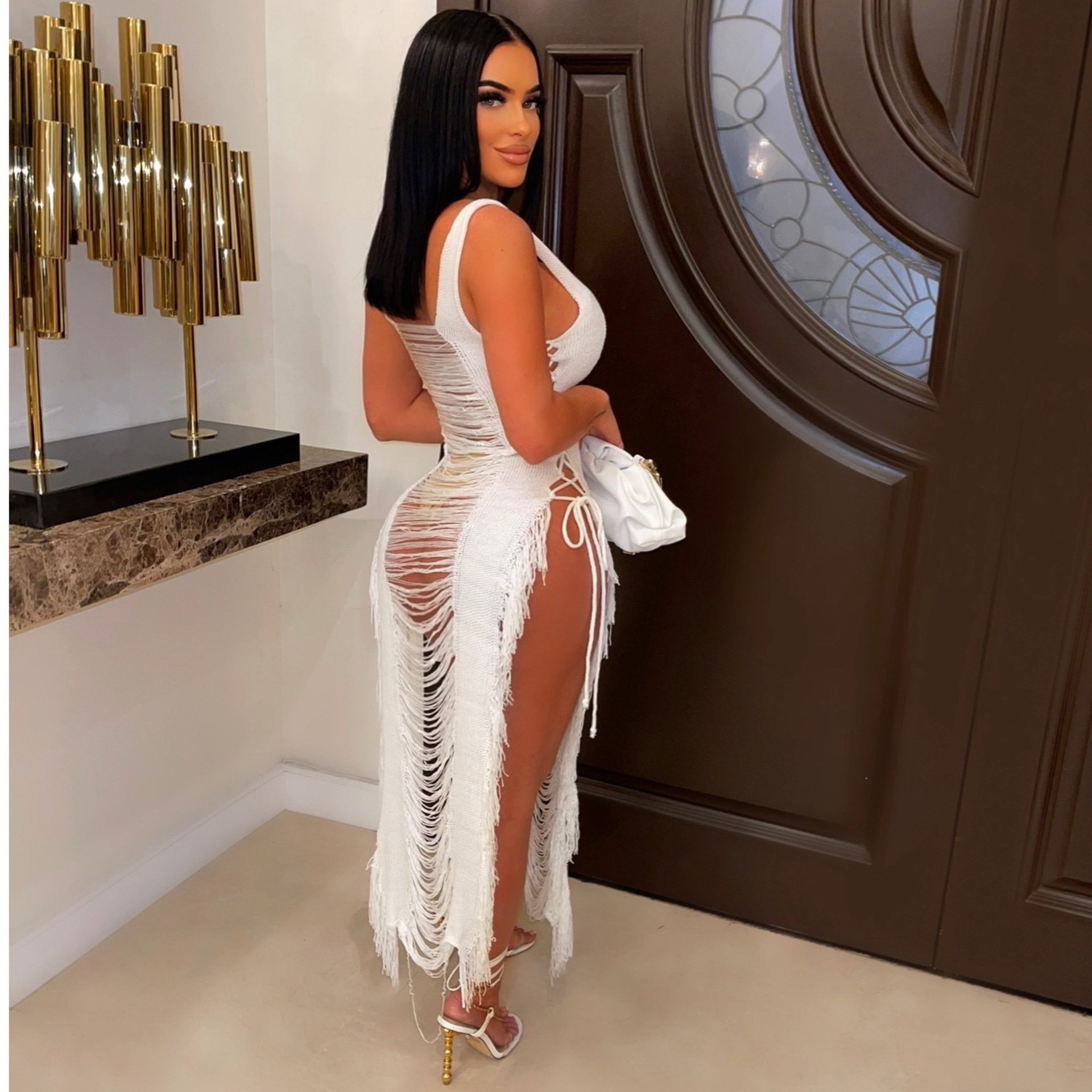 Spring Summer Women Dress Sexy Hollow Out Cutout Beach Cover Up Tassel Beach Dress