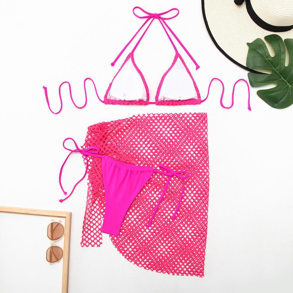 Swimsuit Women Solid Color Split Mesh Swimsuit Three Piece Sets Bikini Swimsuit
