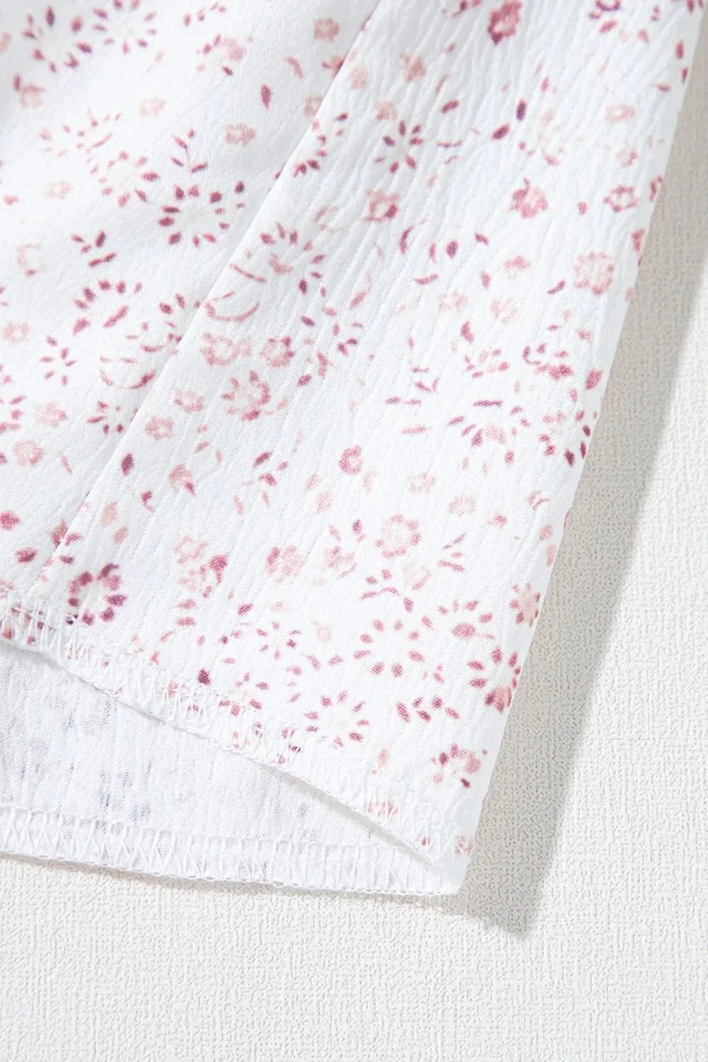 Waffle Floral Patchwork Exposed Seam Detail Short Sleeve Top