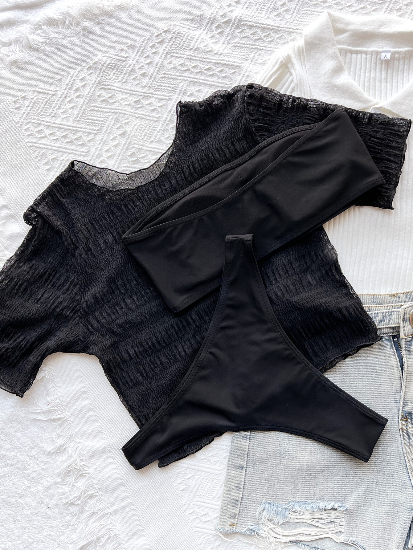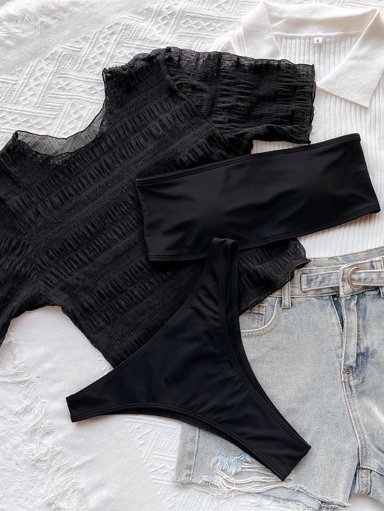 Women Swimsuit Exercise Bikini Three-Piece Half Sleeve Split Swimsuit