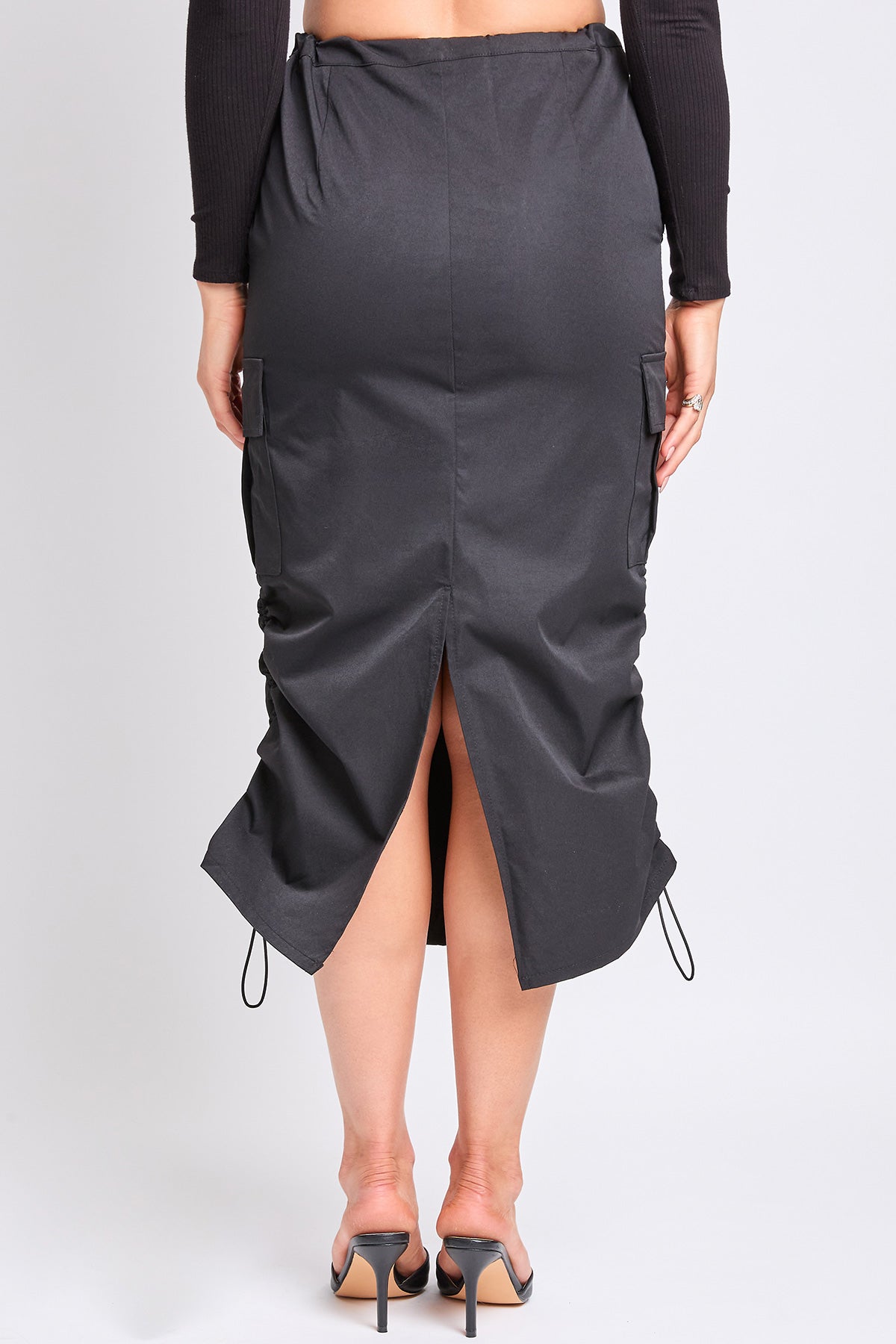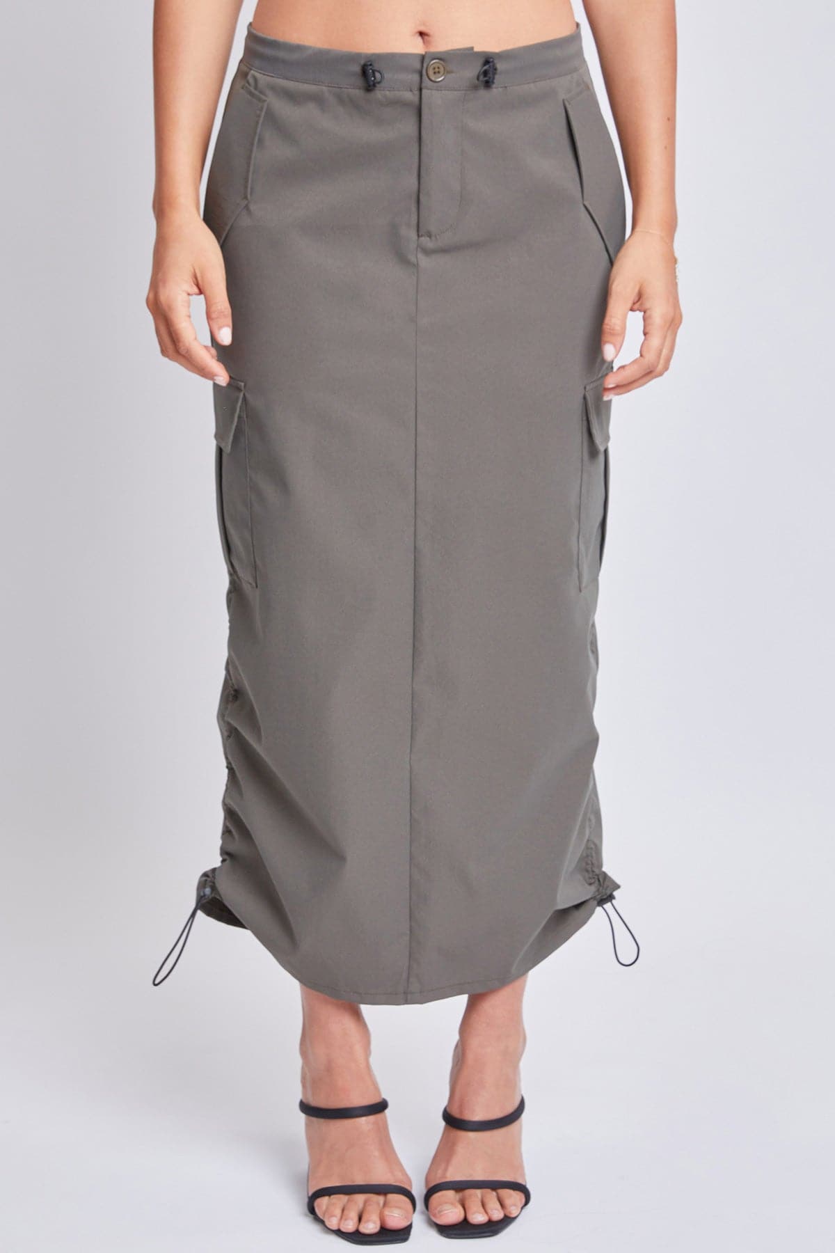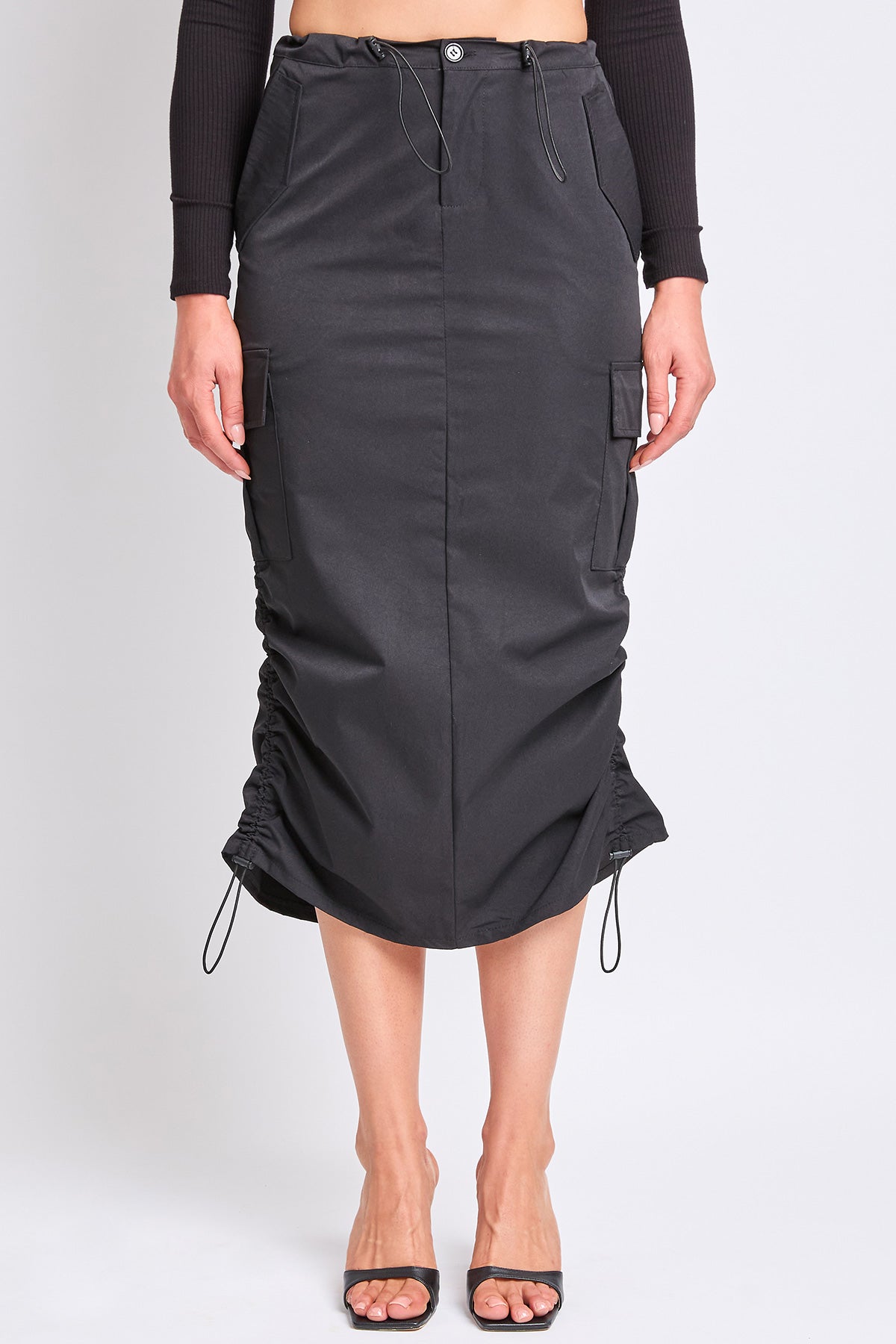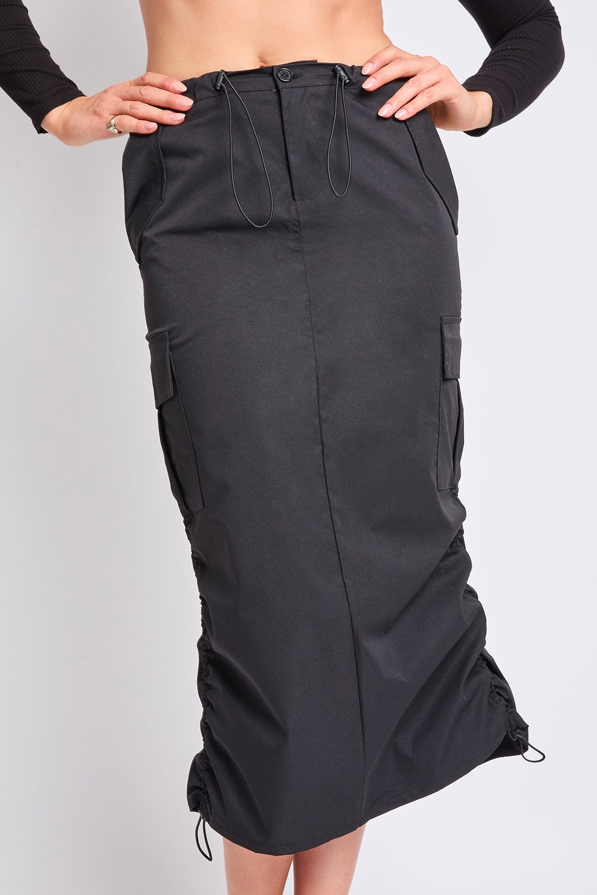 There's nothing "mid" about our Women's Midi Cargo Parachute Skirt. Lightweight fabric shapes this midi skirt for a trendy parachute silhouette. Features two bungee ties at the waist for an optional cinched look, and two bungees at the hem for ruched sides. Detailed with slant front pockets, side cargo pockets, and a slit hem in the back. Style with a fitted crop top and heeled sandals for an on-trend look we're loving right now!