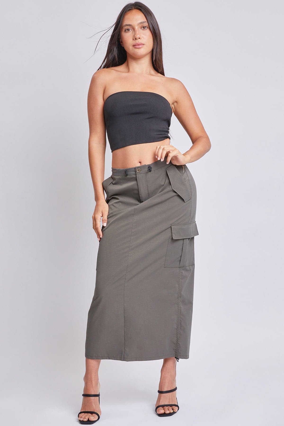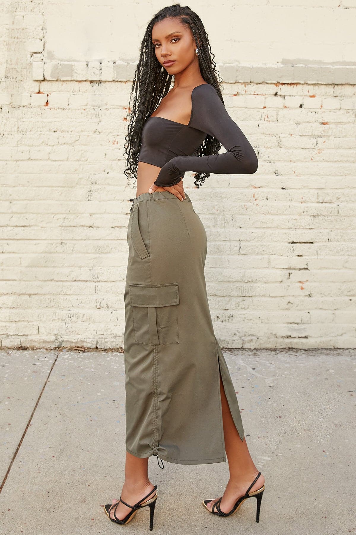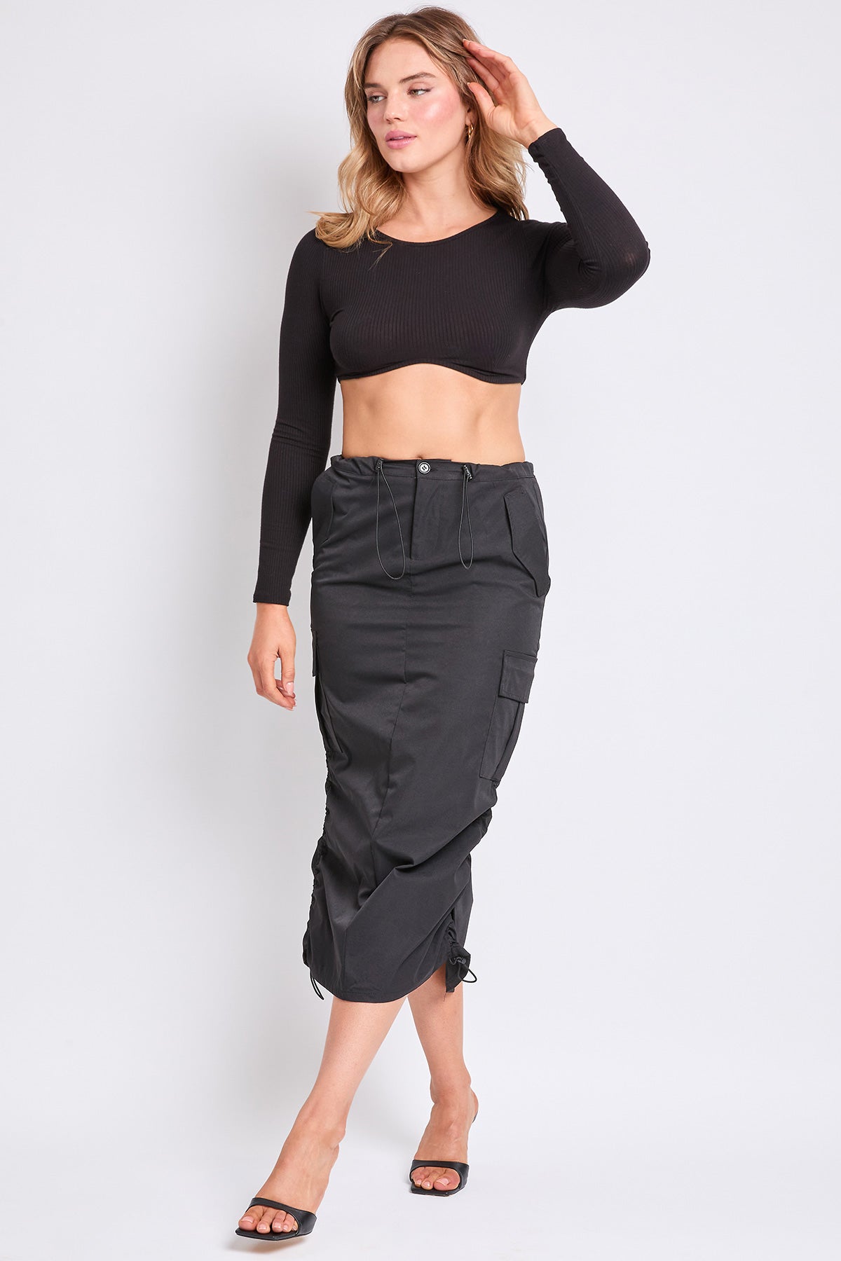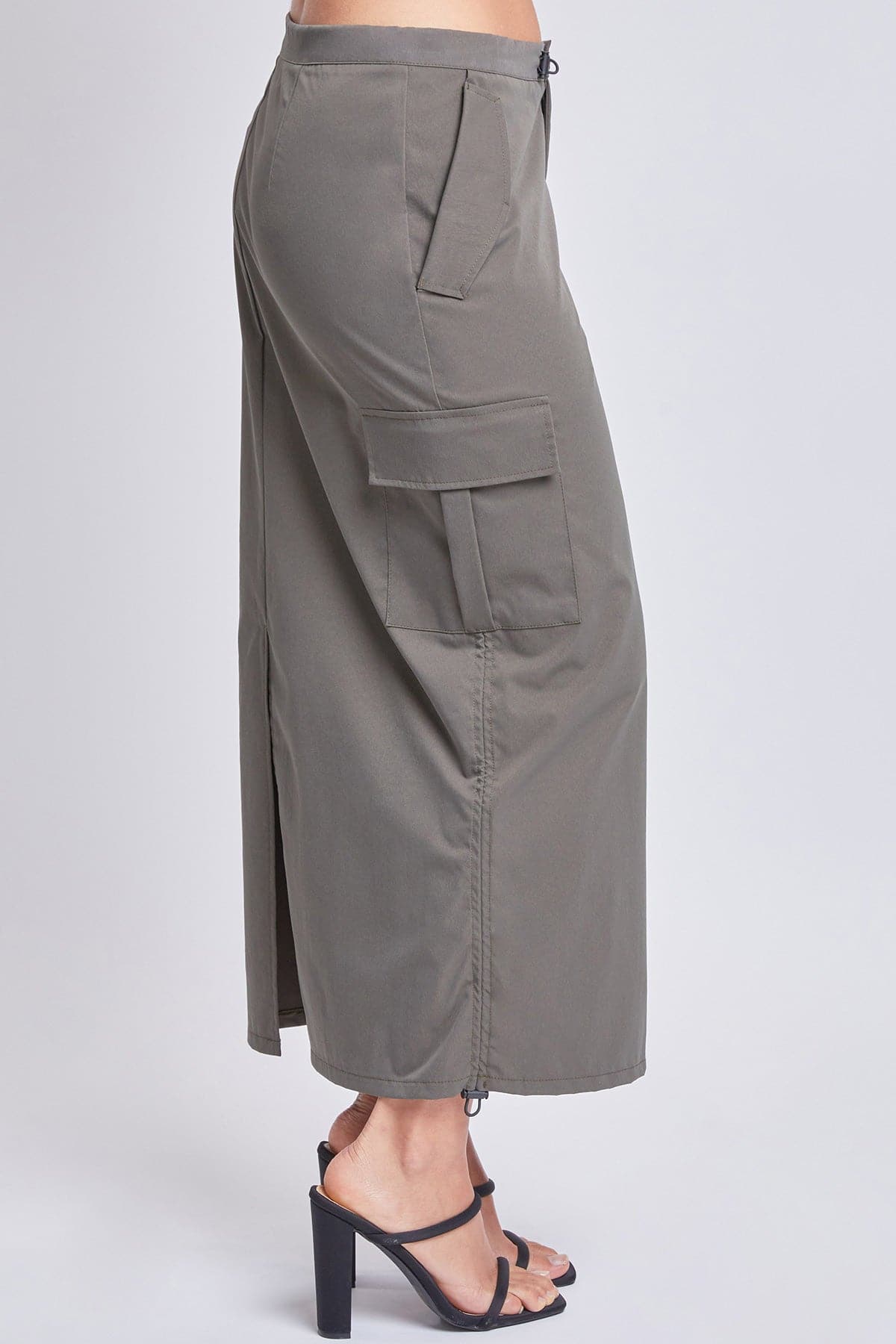 There's nothing "mid" about our Women's Midi Cargo Parachute Skirt. Lightweight fabric shapes this midi skirt for a trendy parachute silhouette. Features two bungee ties at the waist for an optional cinched look, and two bungees at the hem for ruched sides. Detailed with slant front pockets, side cargo pockets, and a slit hem in the back. Style with a fitted crop top and heeled sandals for an on-trend look we're loving right now!