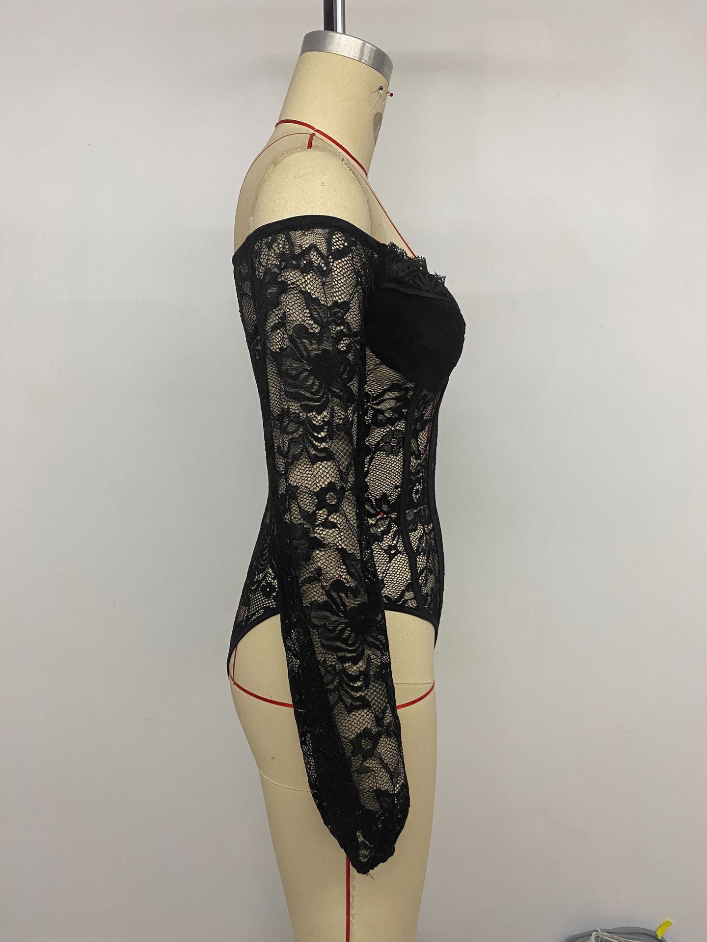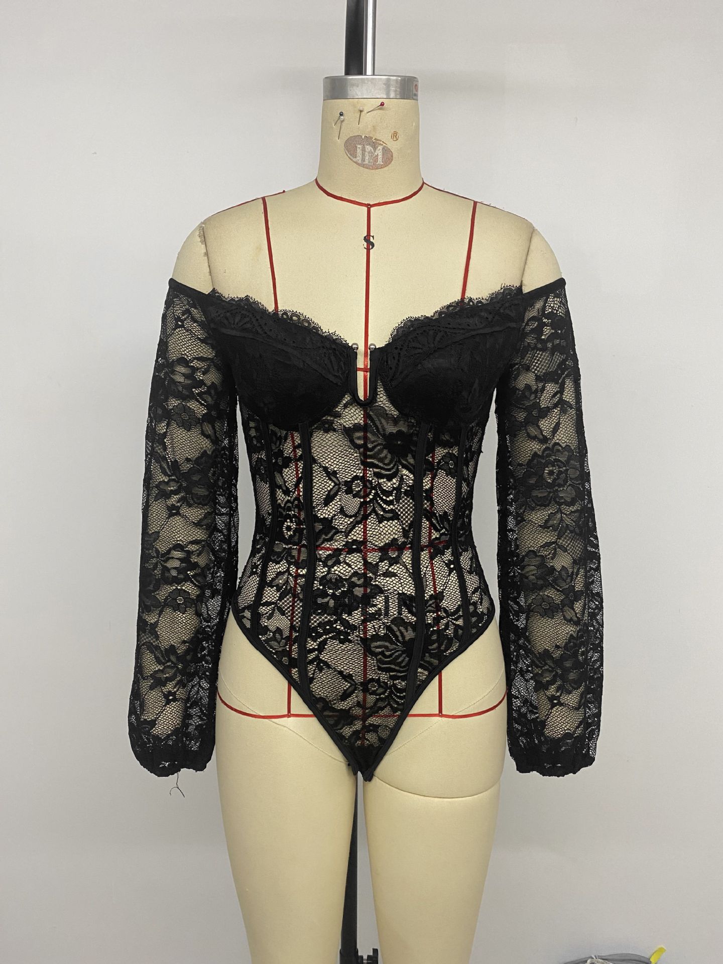 Lace V neck off Shoulder Long Sleeve Elegant Sexy Jumpsuit