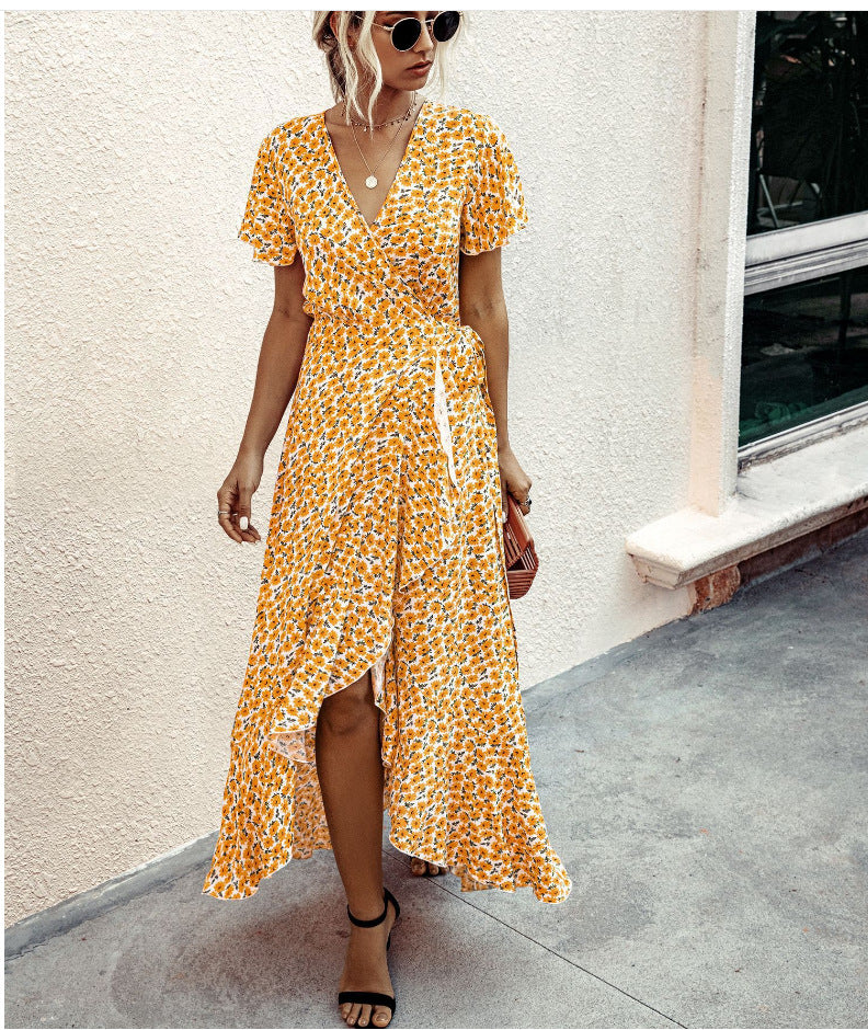 Summer Dot Sexy V-neck Flounce Short Sleeve Women Dress