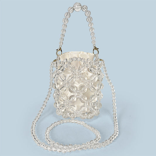 Transparent Irregular Asymmetric Hand Woven Acrylic Crystal String Beads Cocktail Mobile Phone Bag Cross Body Bucket Pouch