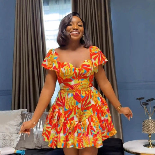 Retro Print Skirt Summer Niche Characteristic Sexy Slim Sheath Dress