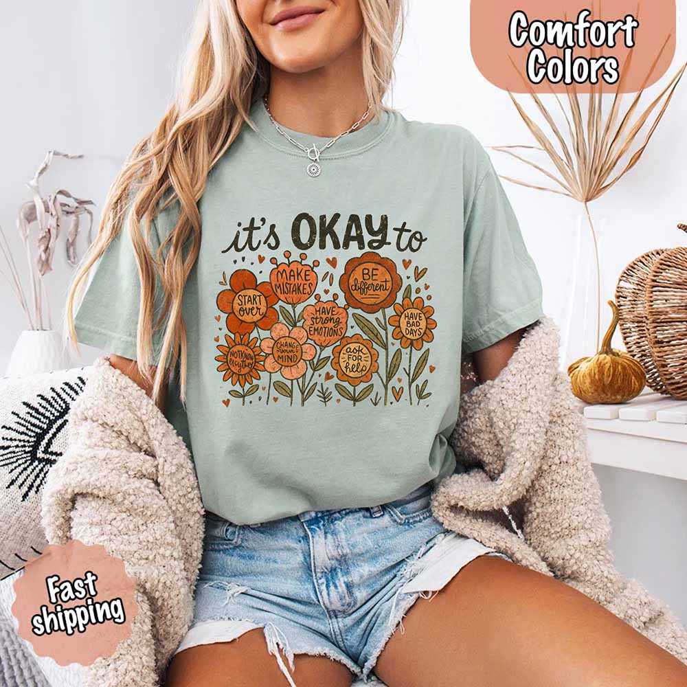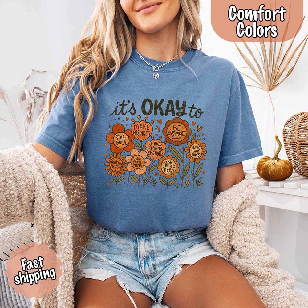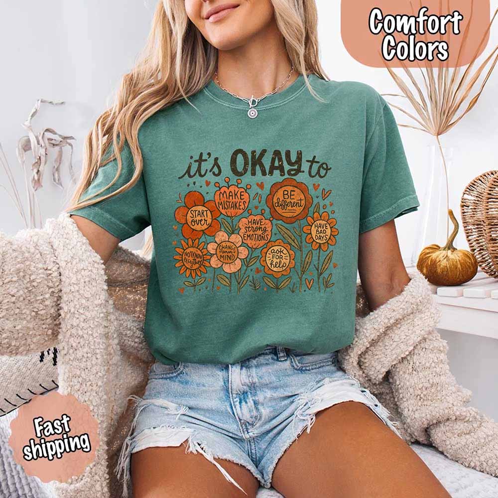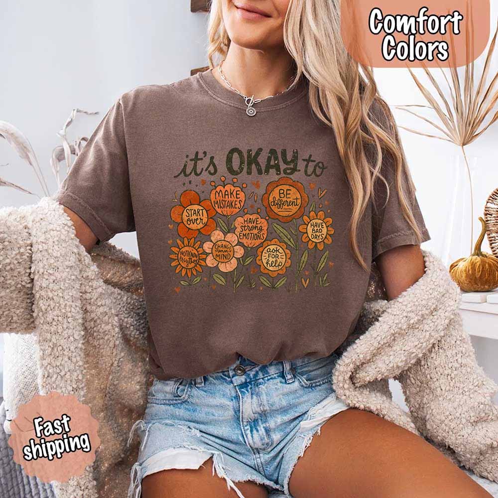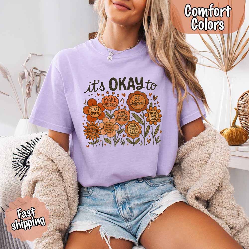 It’s okay boho floral comfort colors tee – vintage wildflower shirt for women
