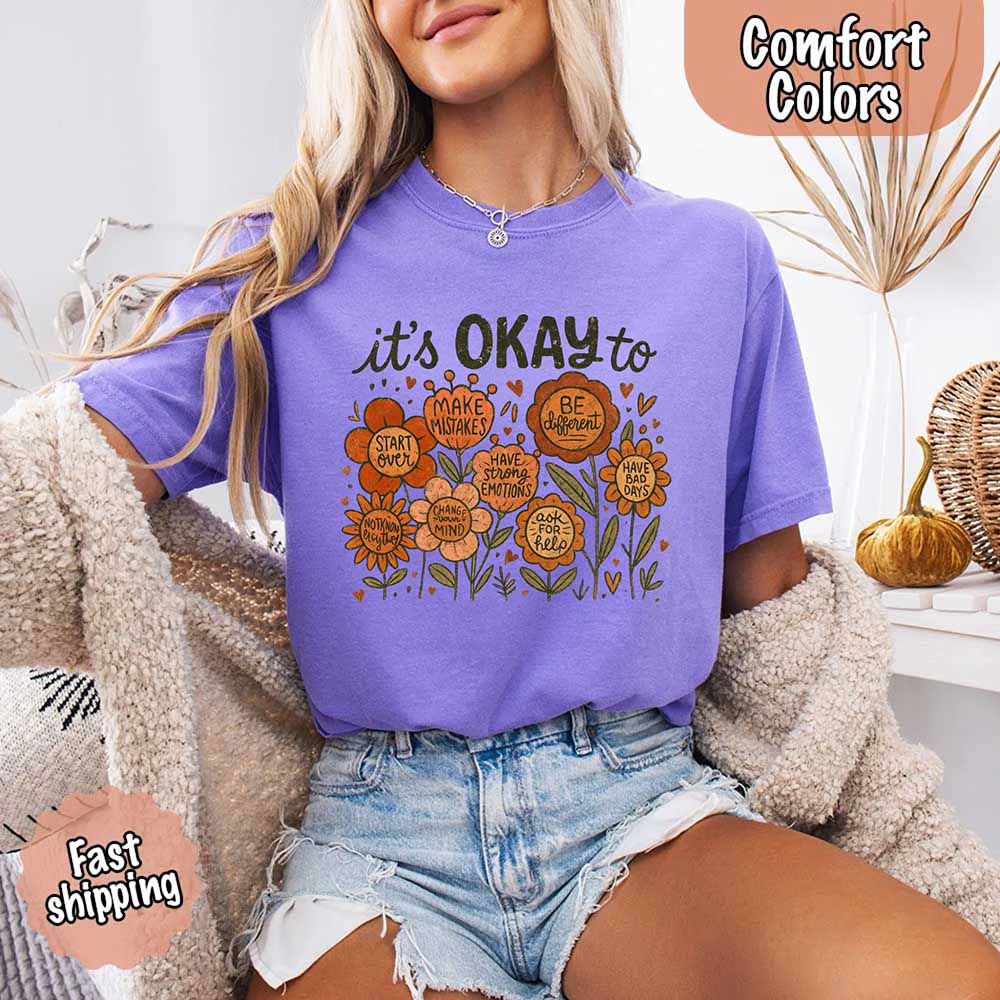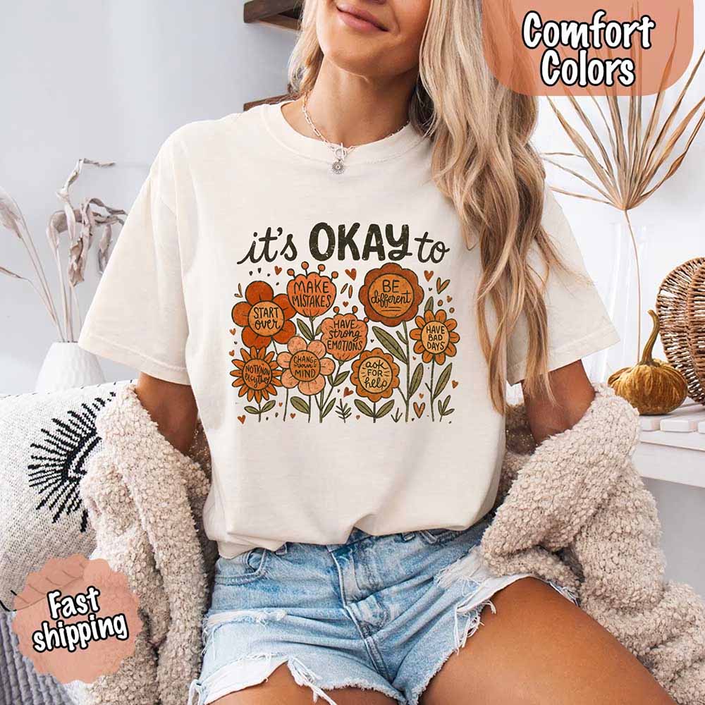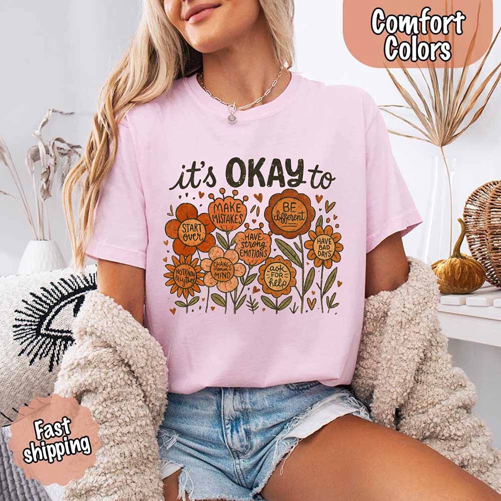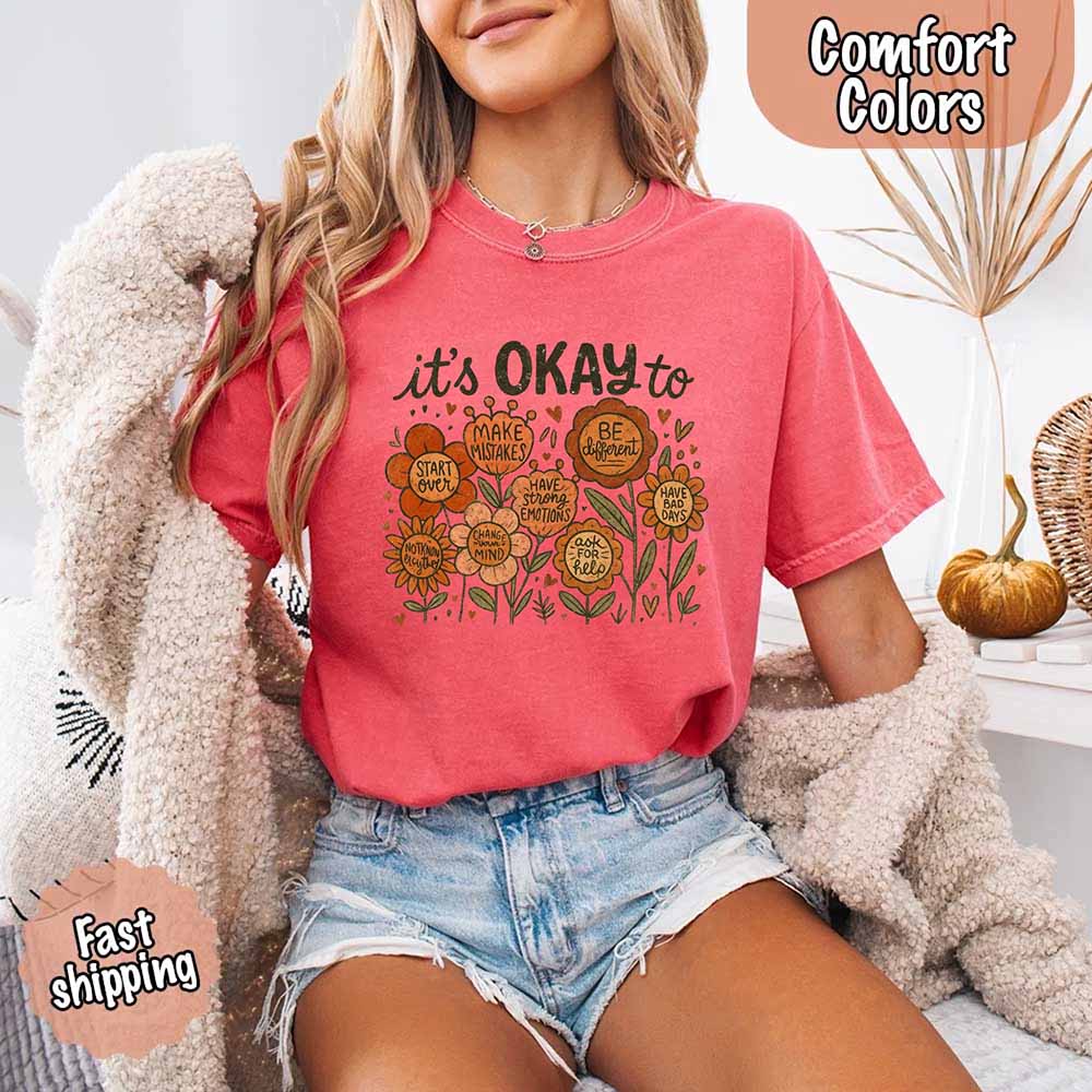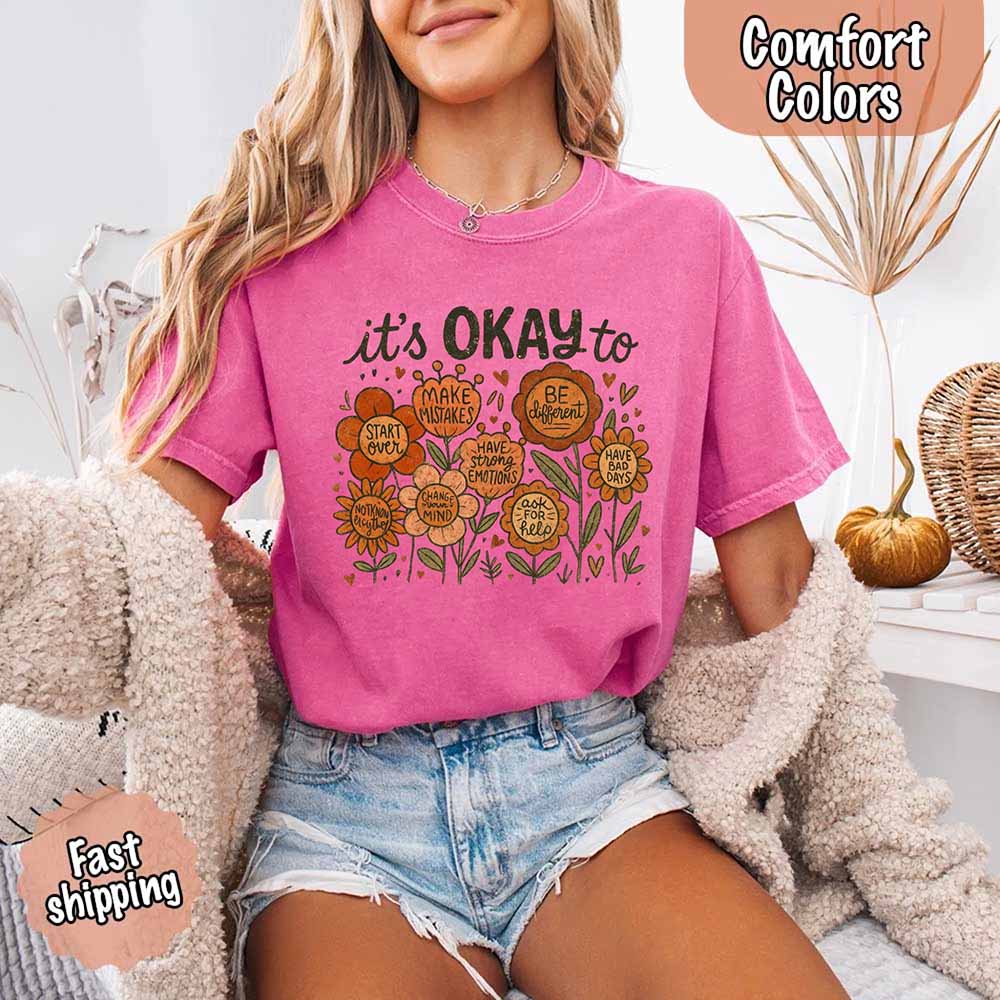 It’s okay boho floral comfort colors tee – vintage wildflower shirt for women