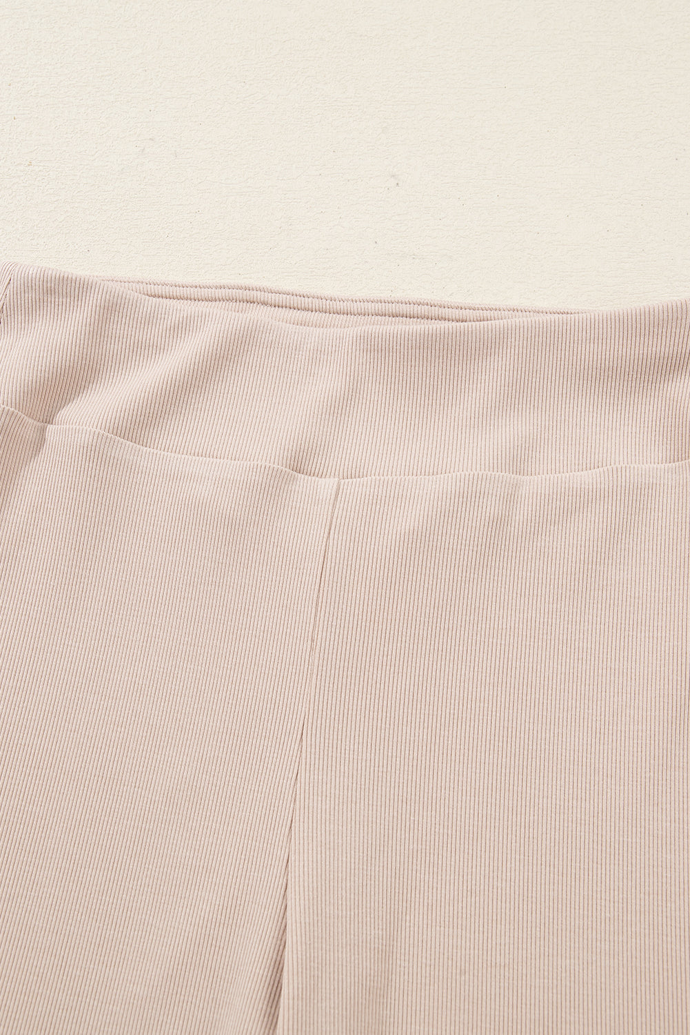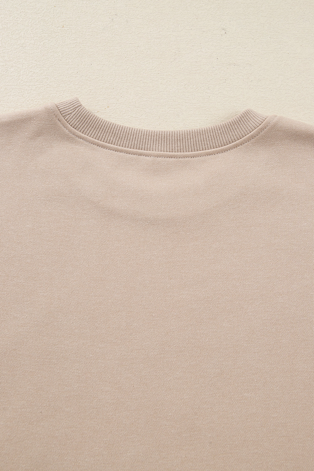 Meet a contemporary athleisure set designed for effortless style. The Jet Stream Oversize Slit Sweatshirt features a roomy silhouette and a bold front slit that allows fluid movement, while the matching ribbed leggings offer a flattering, flexible fit with a tactile texture. The fabric is a soft blend of 65% polyester and 35% cotton, providing durability and a comfortable hand feel.