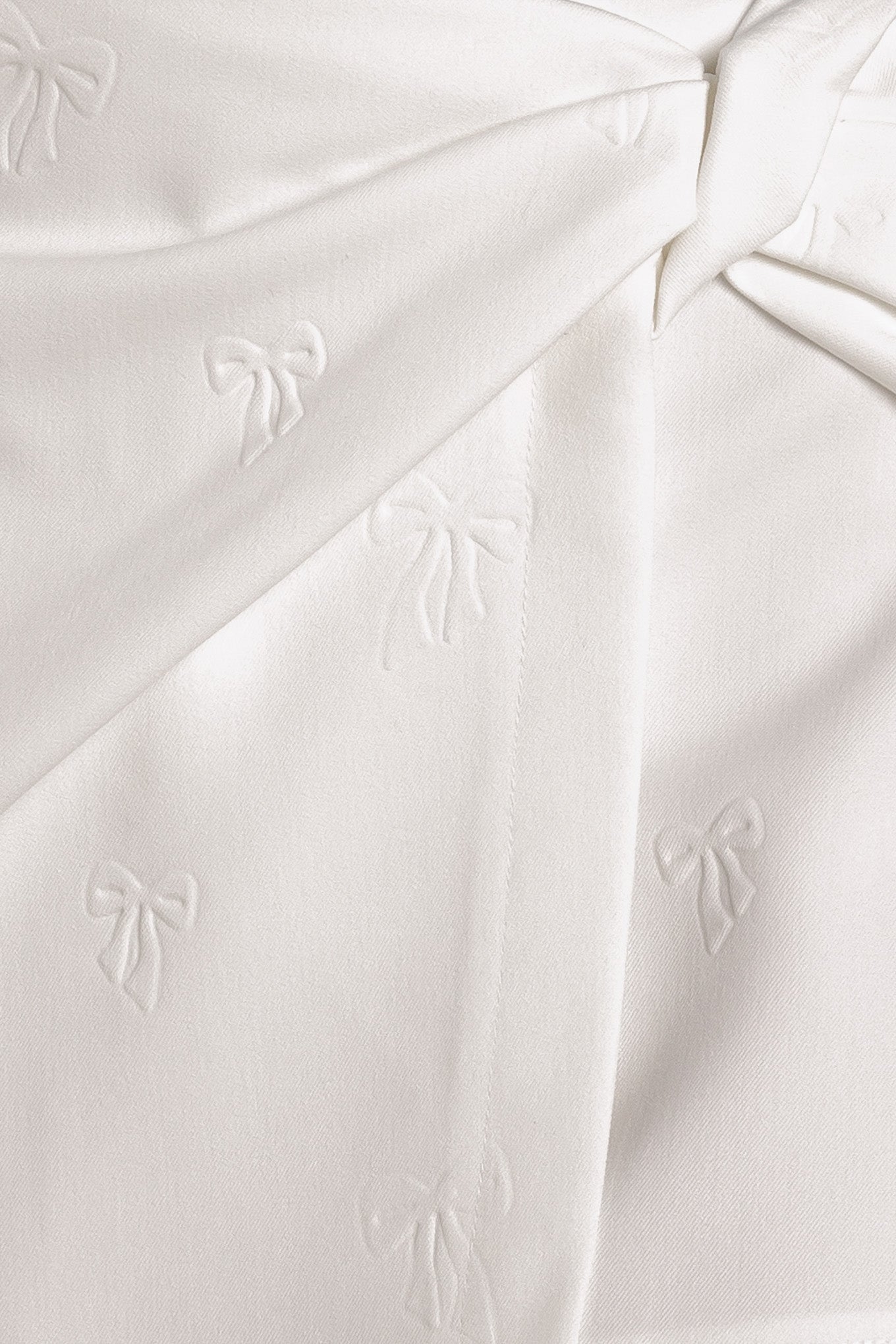 This woven skort showcases a ribbon-embossed design, along with side knot detailing and a back zipper closure.