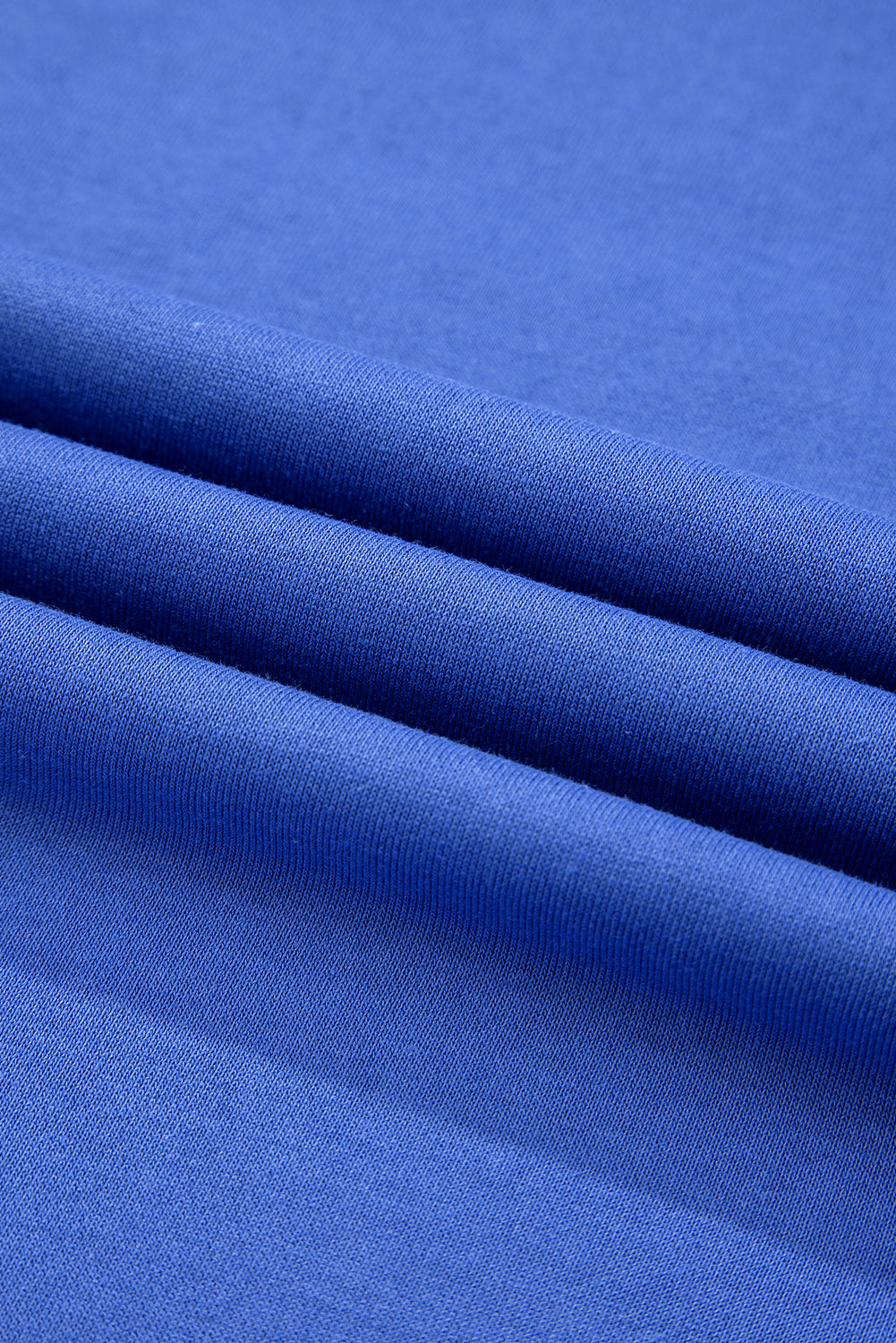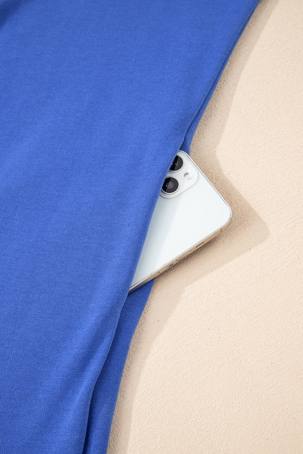 Made with soft, breathable fabric, it drapes smoothly and moves with you. The sky-blue body pairs with contrasting sleeves to create a standout finish that works with sneakers, boots, or simple sandals.